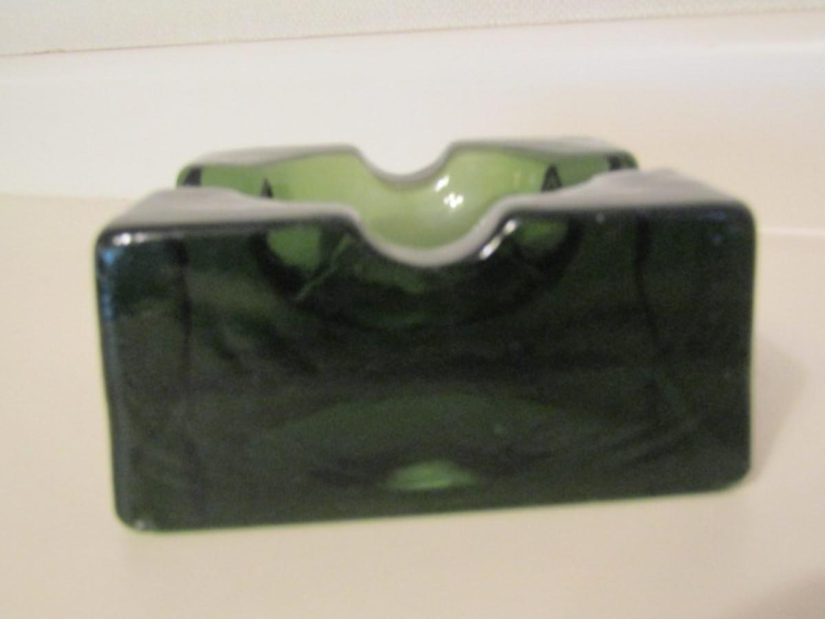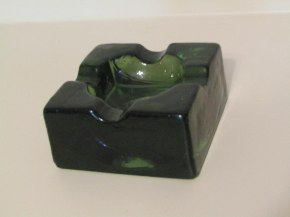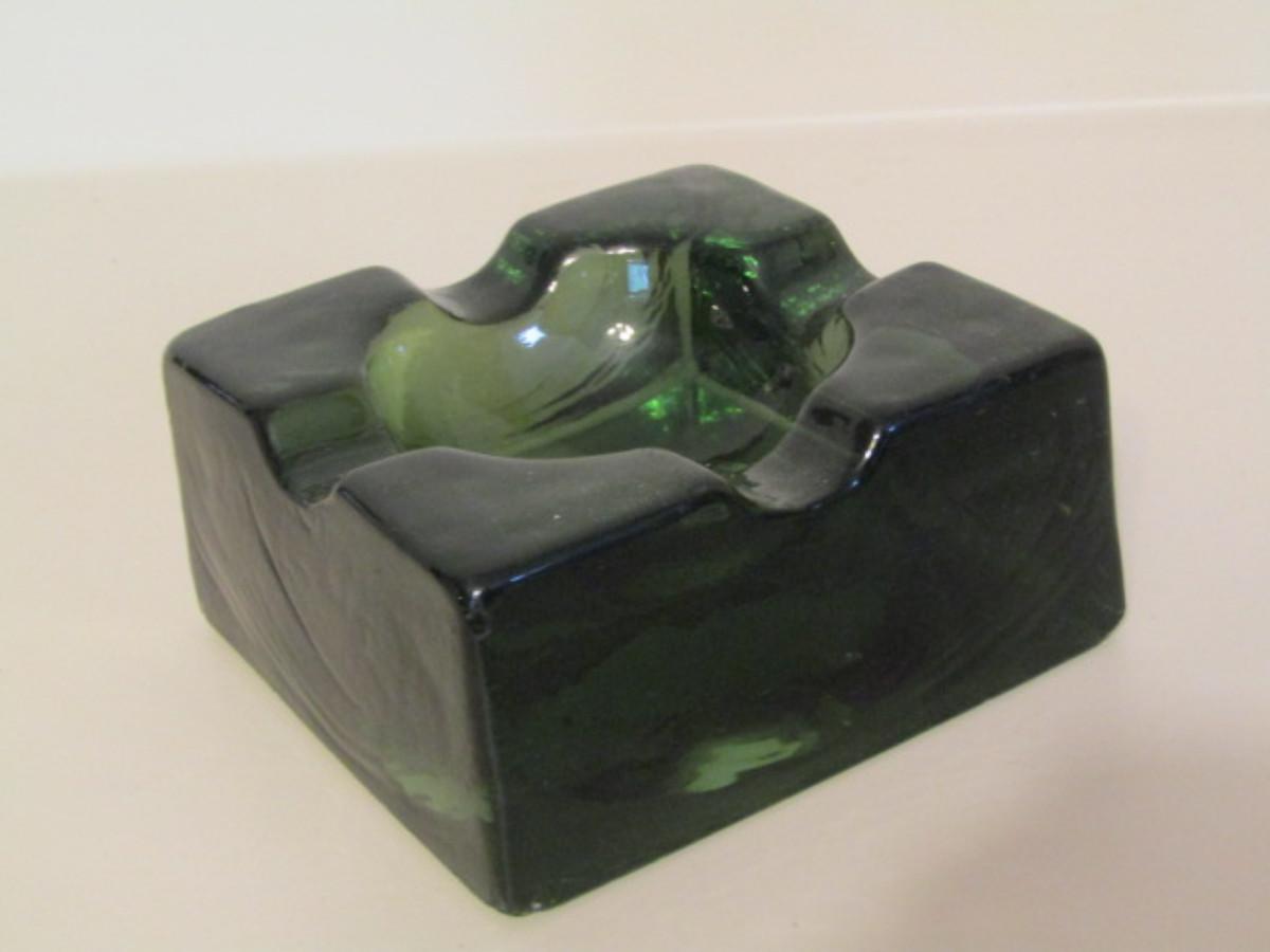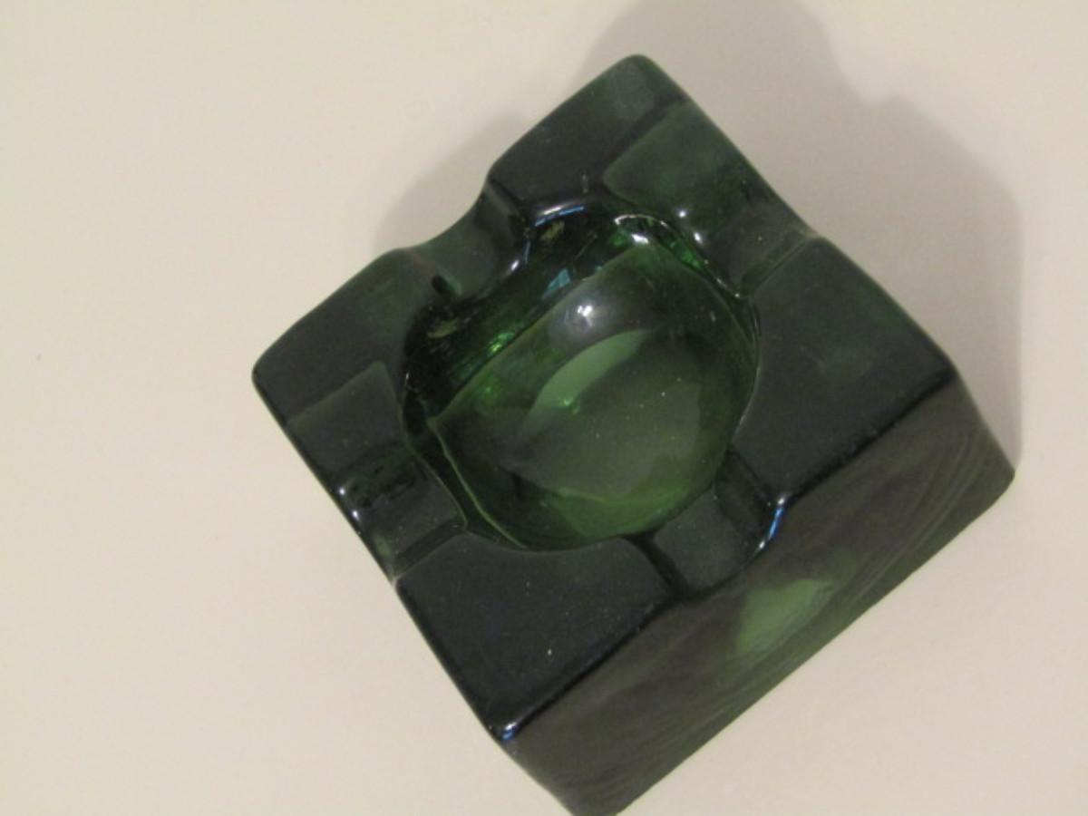 Vintage Green Glass Block Ashtray
