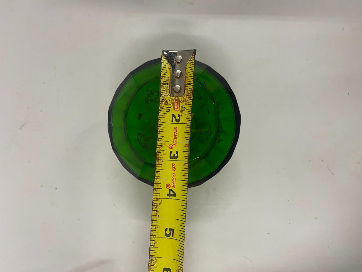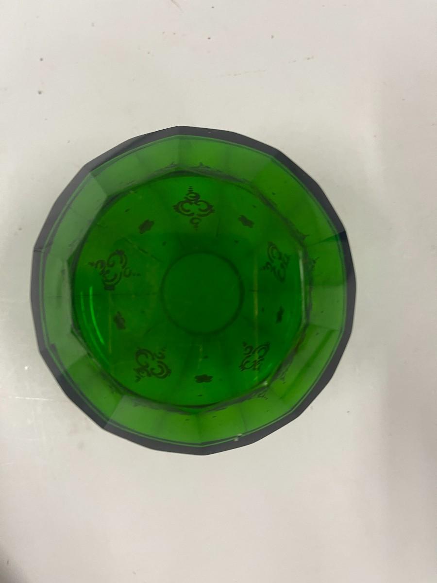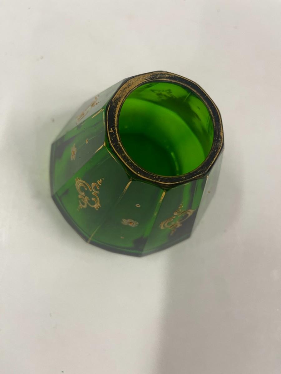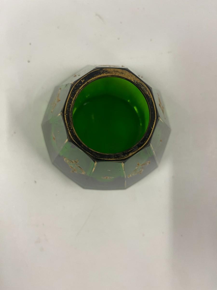 Vintage Green Glass Diamond Shaped Vase with Gold Embellishments