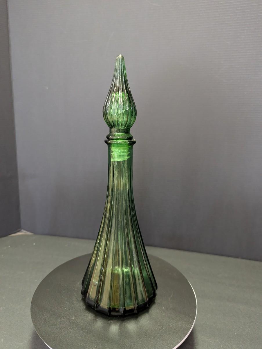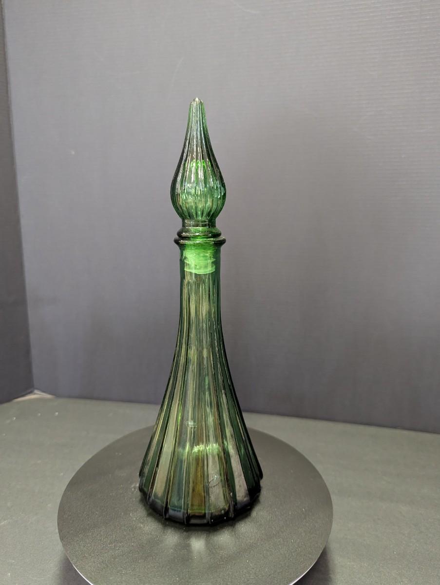 Vintage Green Glass Genie Style Bottle