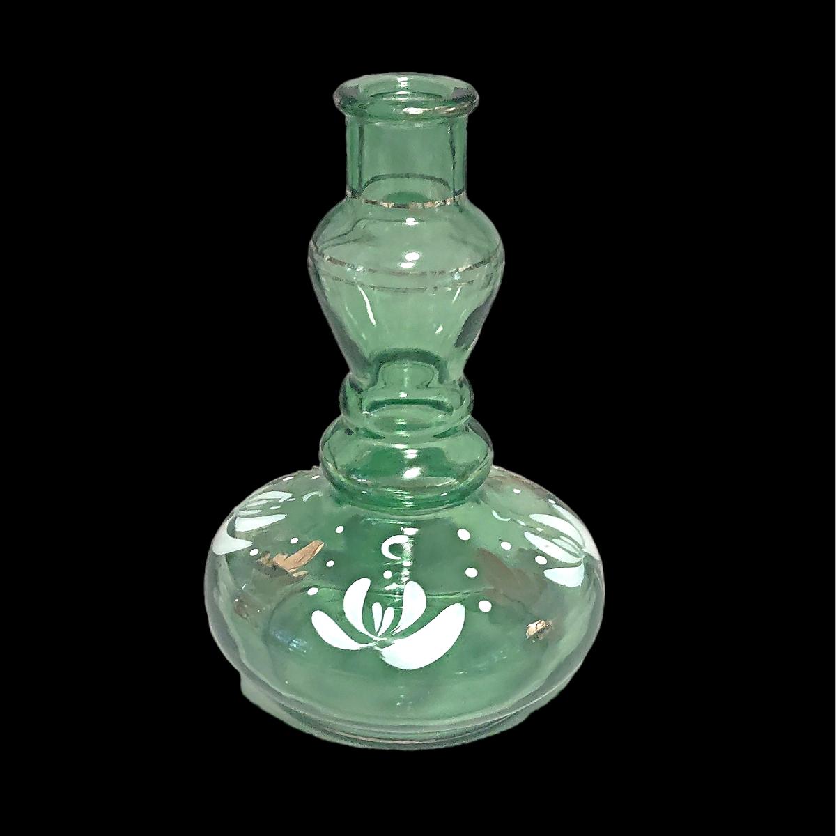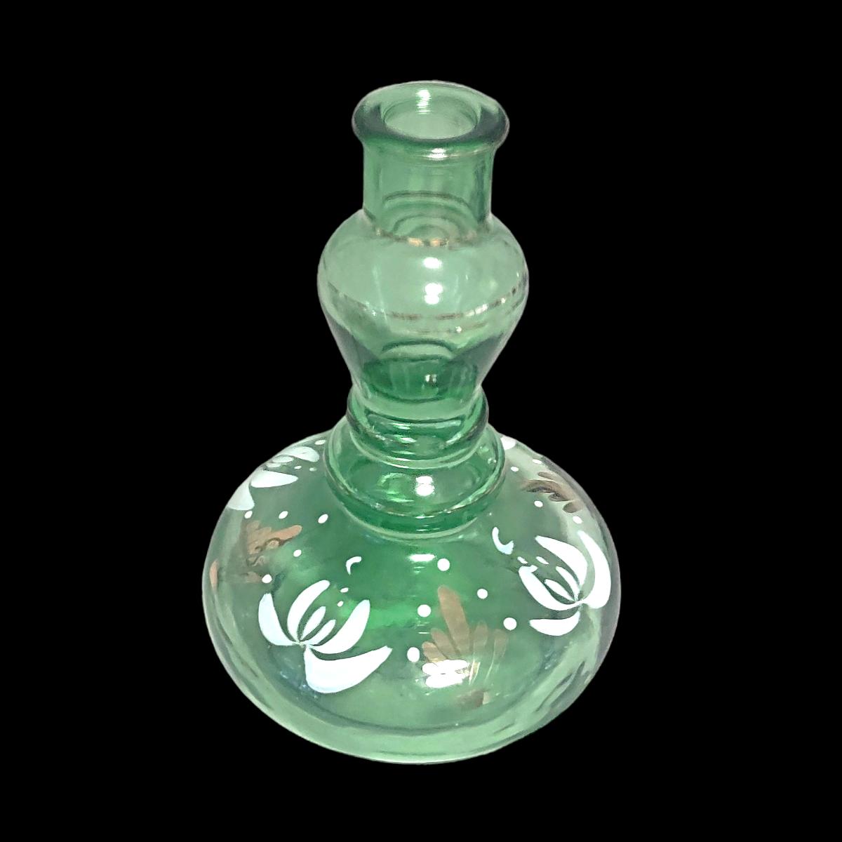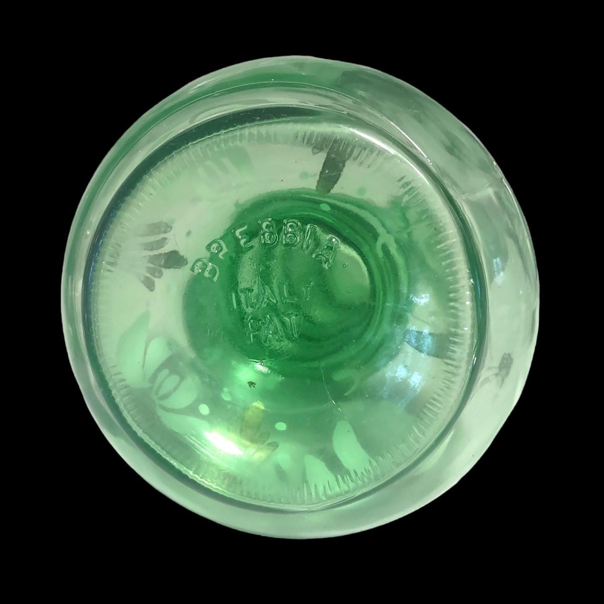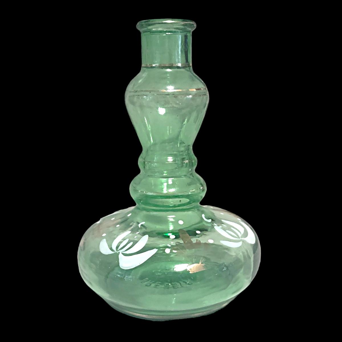Vintage Green Brebbia Glass Hookah Vase w/ Gold & White Hand Painted Accents