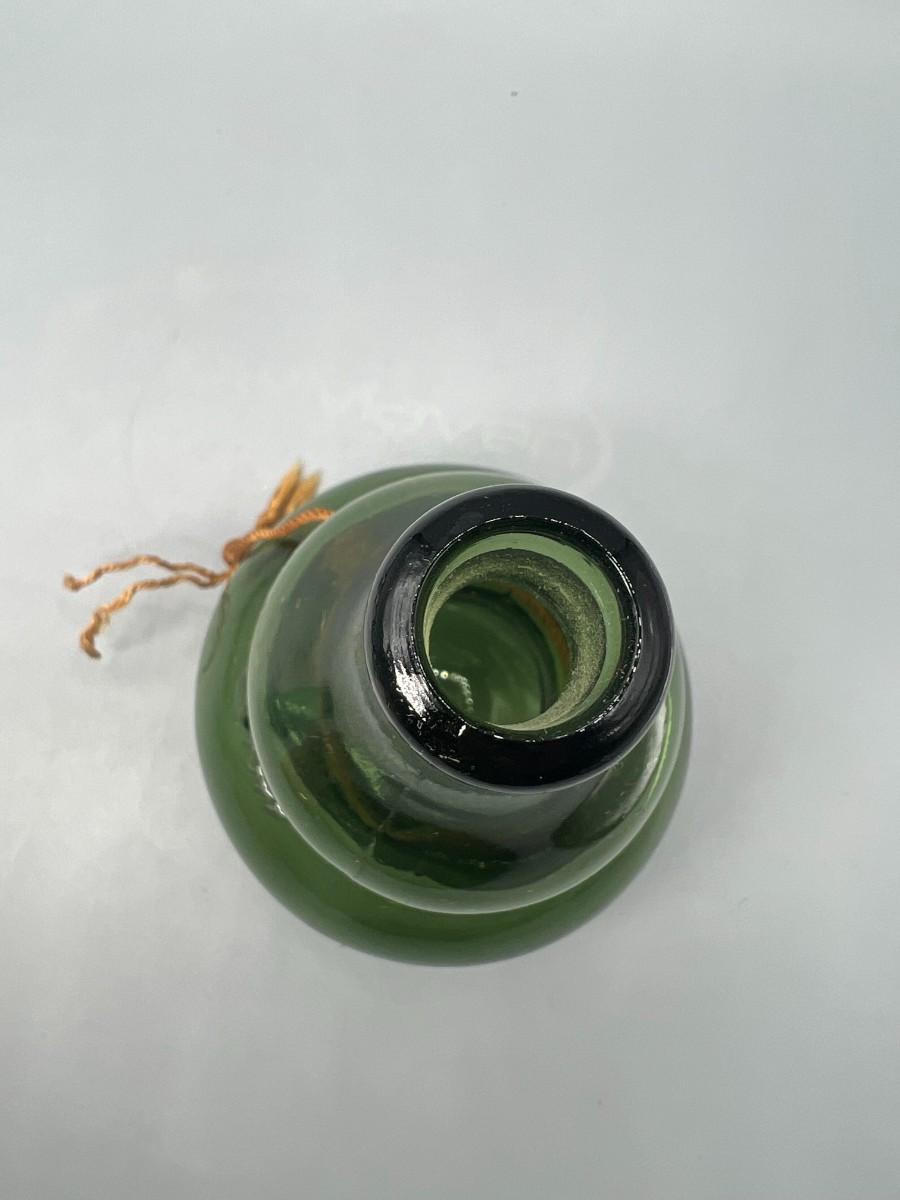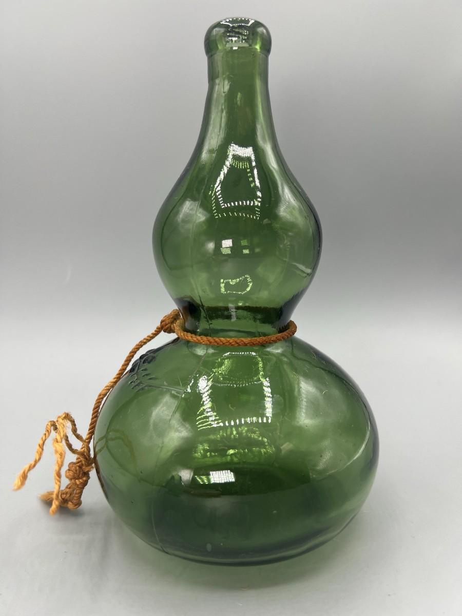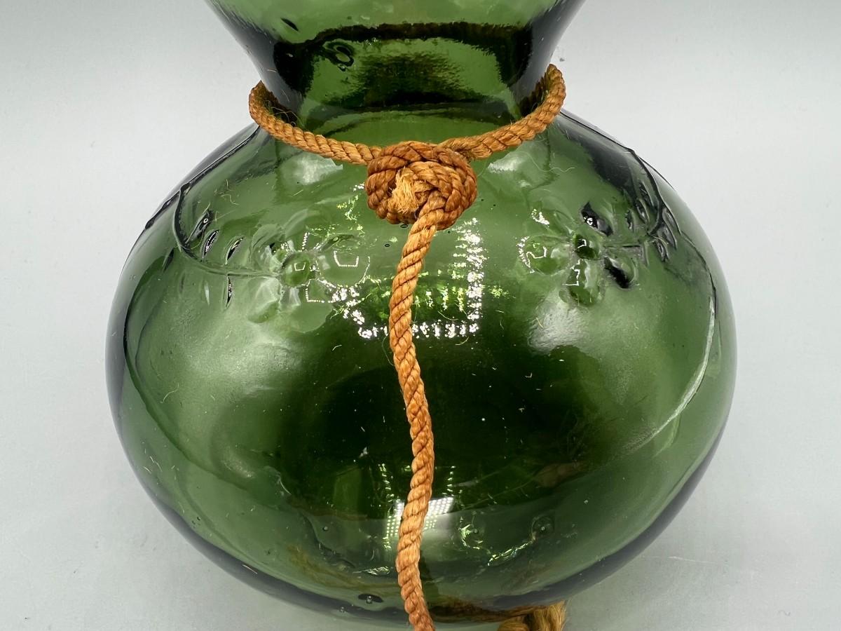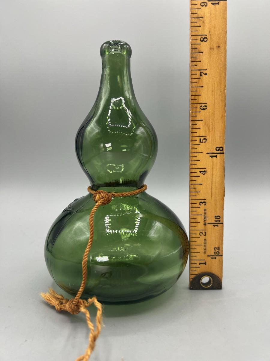 Vintage Green Glass Hourglass Curvy Shaped Wine Vino Bottle, there are no significant cracks or chips to the bottle and is in good vintage condition. Check pictures for more details and for sizing.