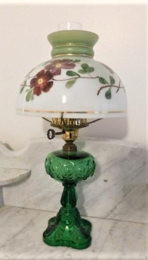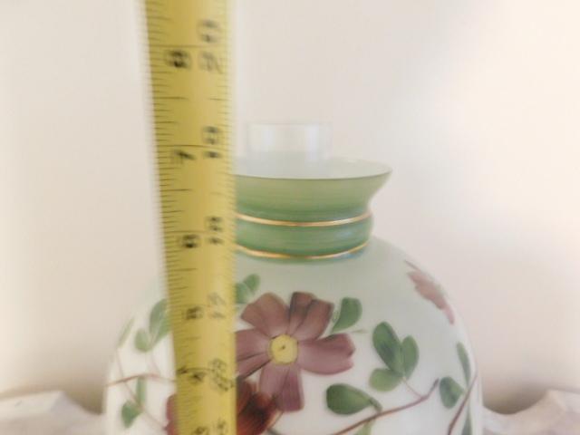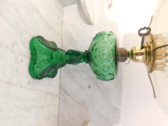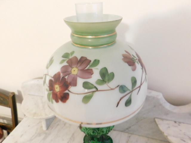 Vintage Green Glass Post Electric Hurricane Lamp with 10" Painted Shade