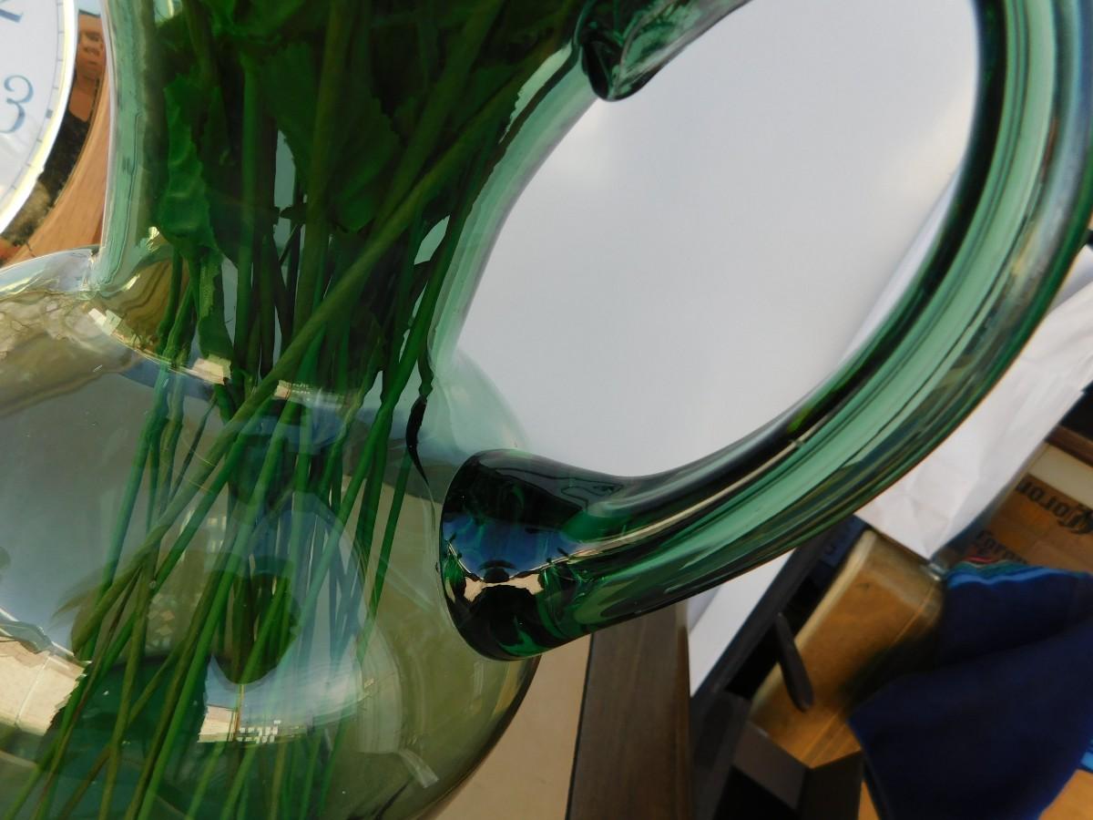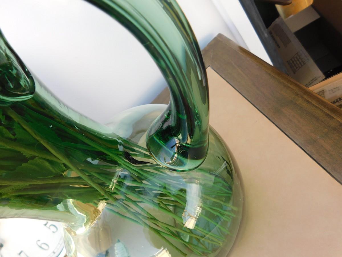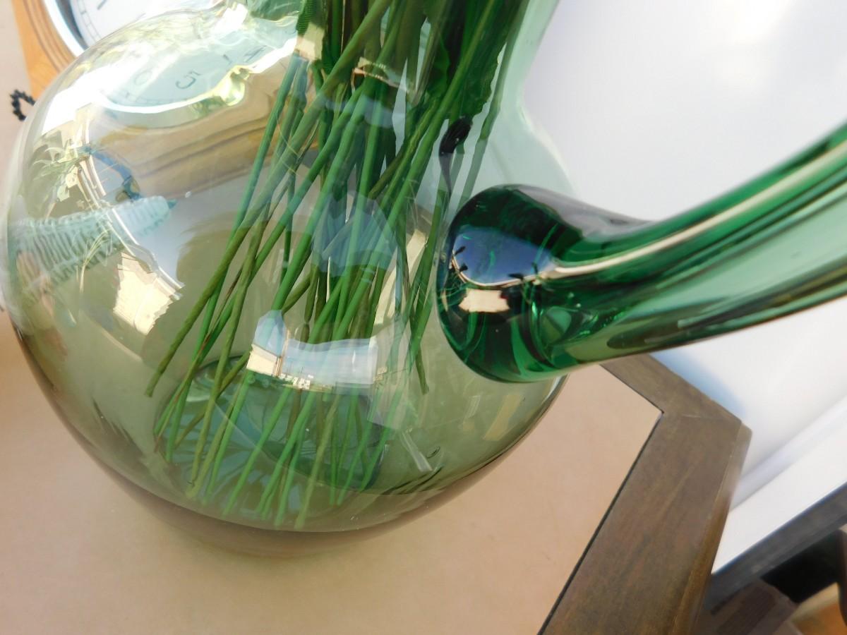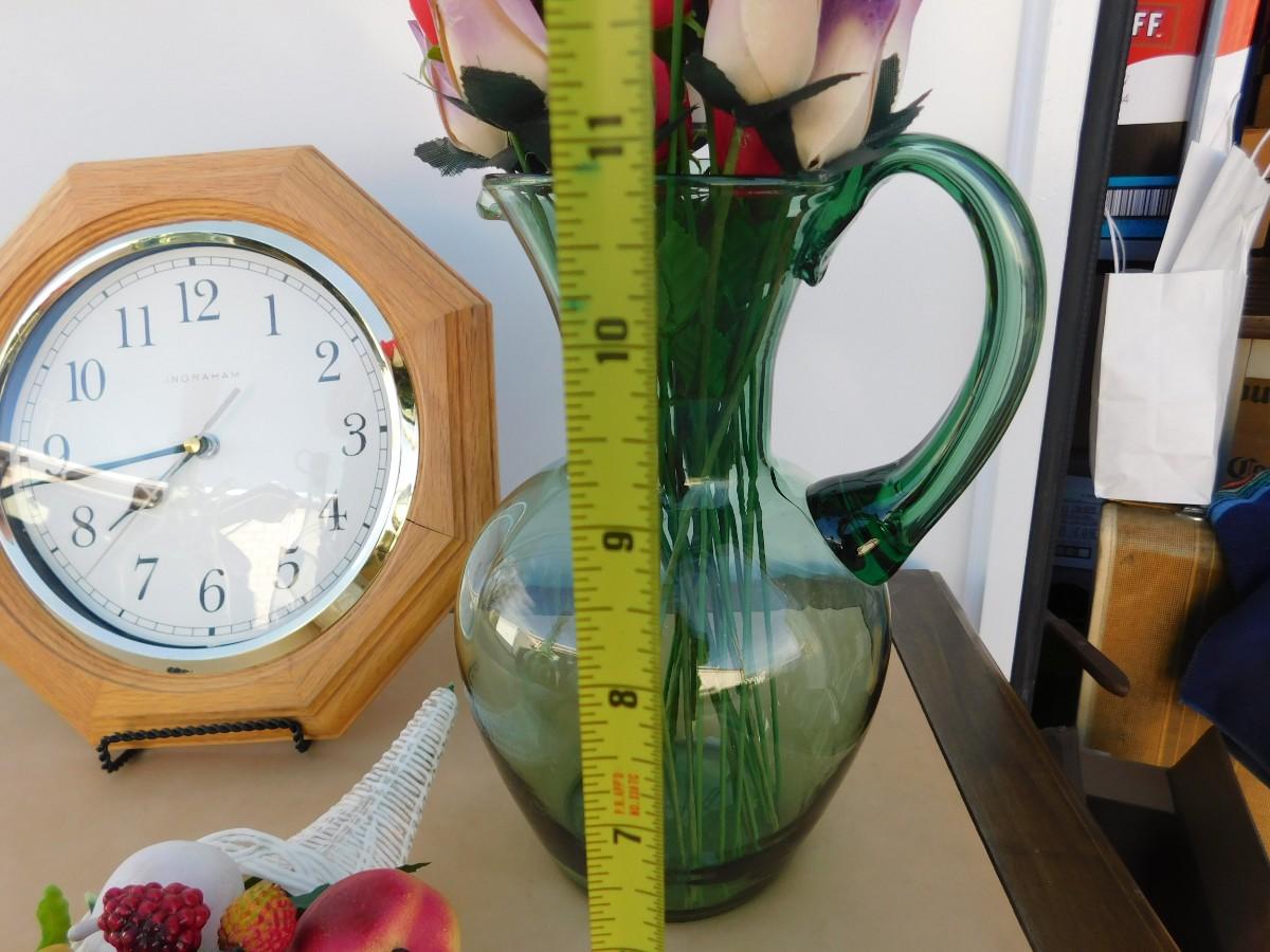 THE GREEN PITCHER IS CRACKED AT THE HANDLE ˜ SO IT WOULD BE FOR DECROTIVE PURPOSES ONLY