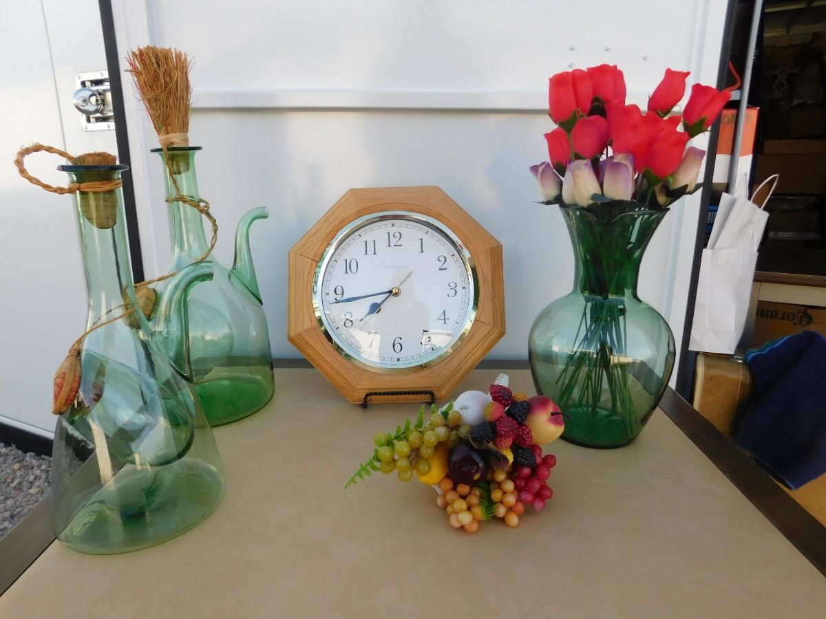 VINTAGE GREEN GLASSWARE AND HOME DECOR