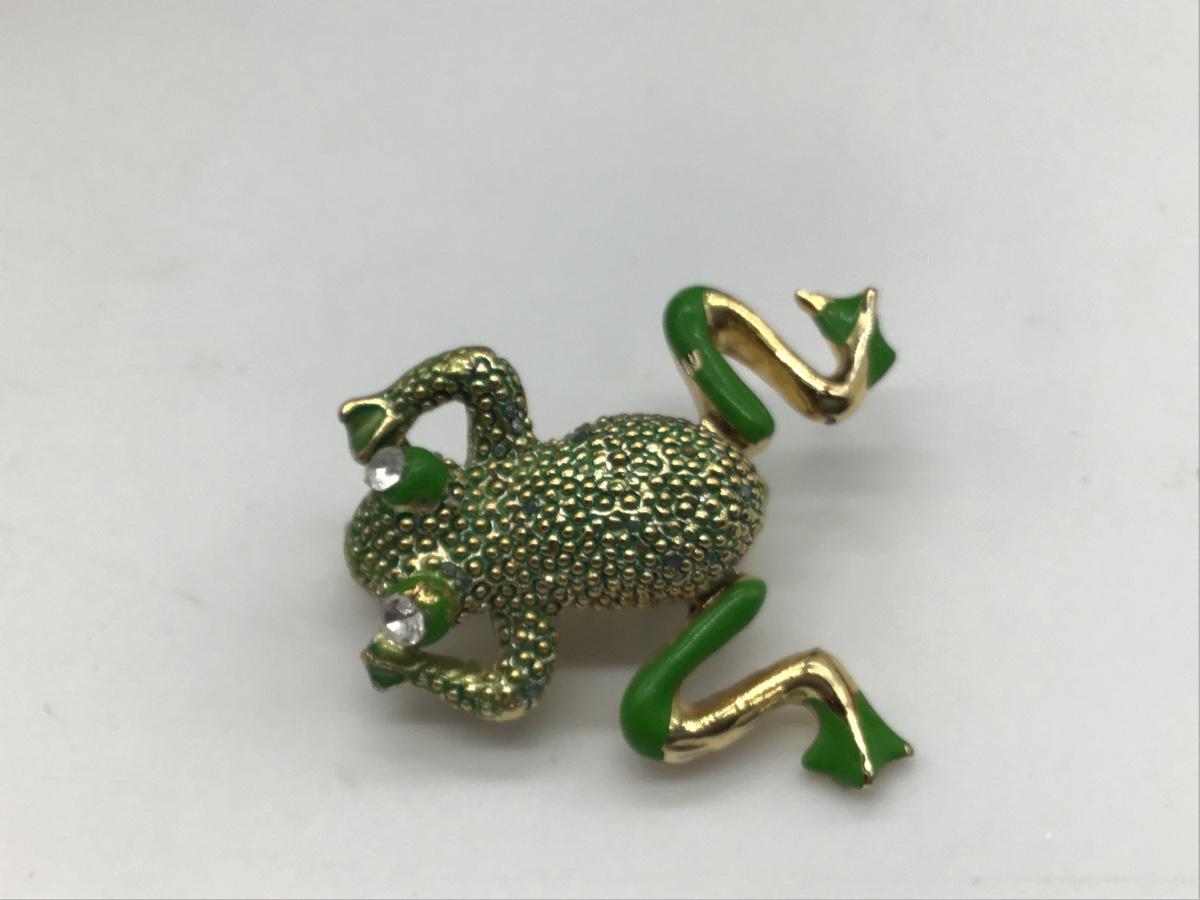 VINTAGE GREEN & GOLD SPARKLY CLIMBING FROG ¸ LEGS MOVE! BROOCH PIN