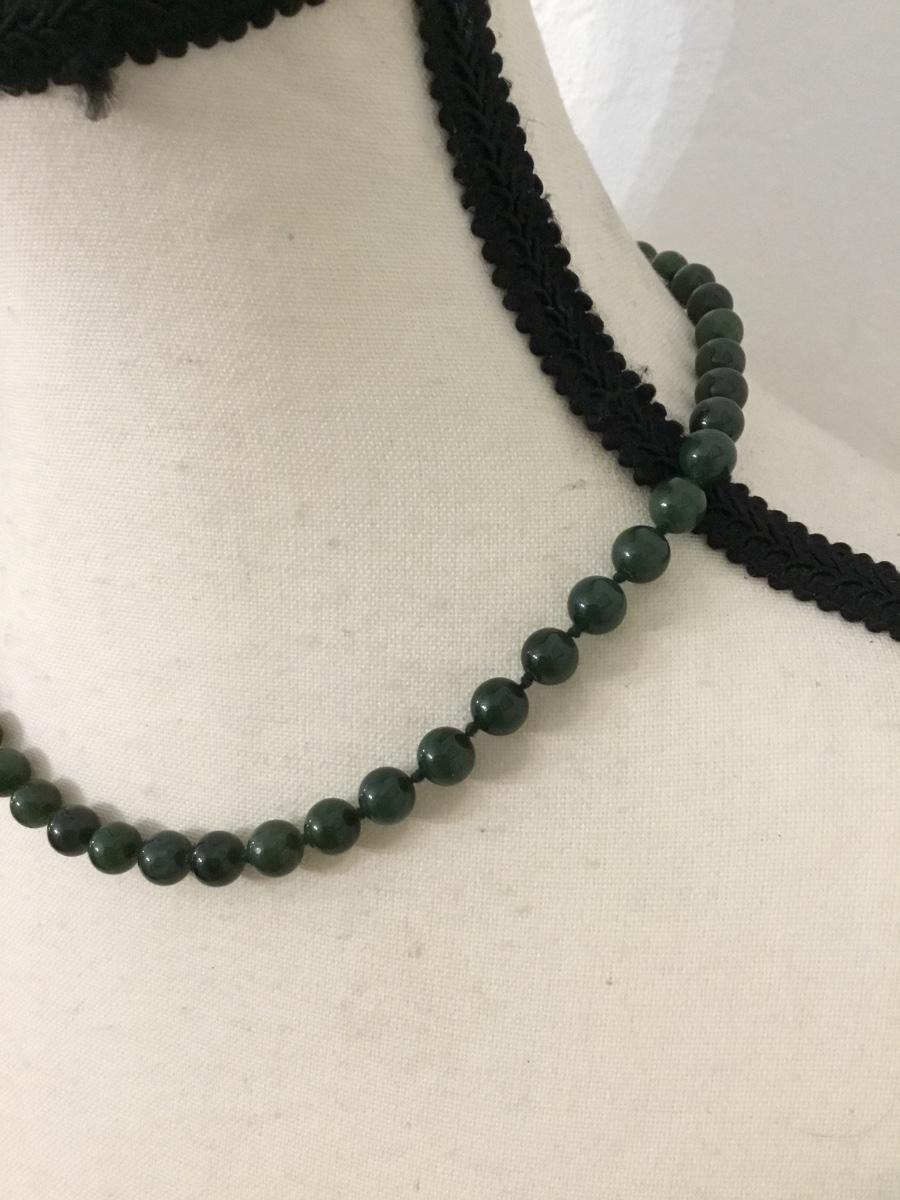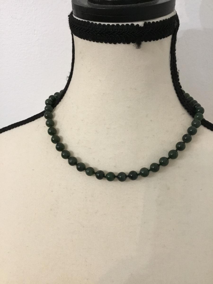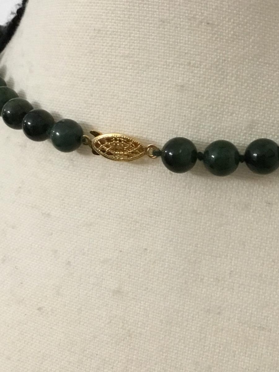 Vintage green Jasper beaded necklace, gold tone, clasp