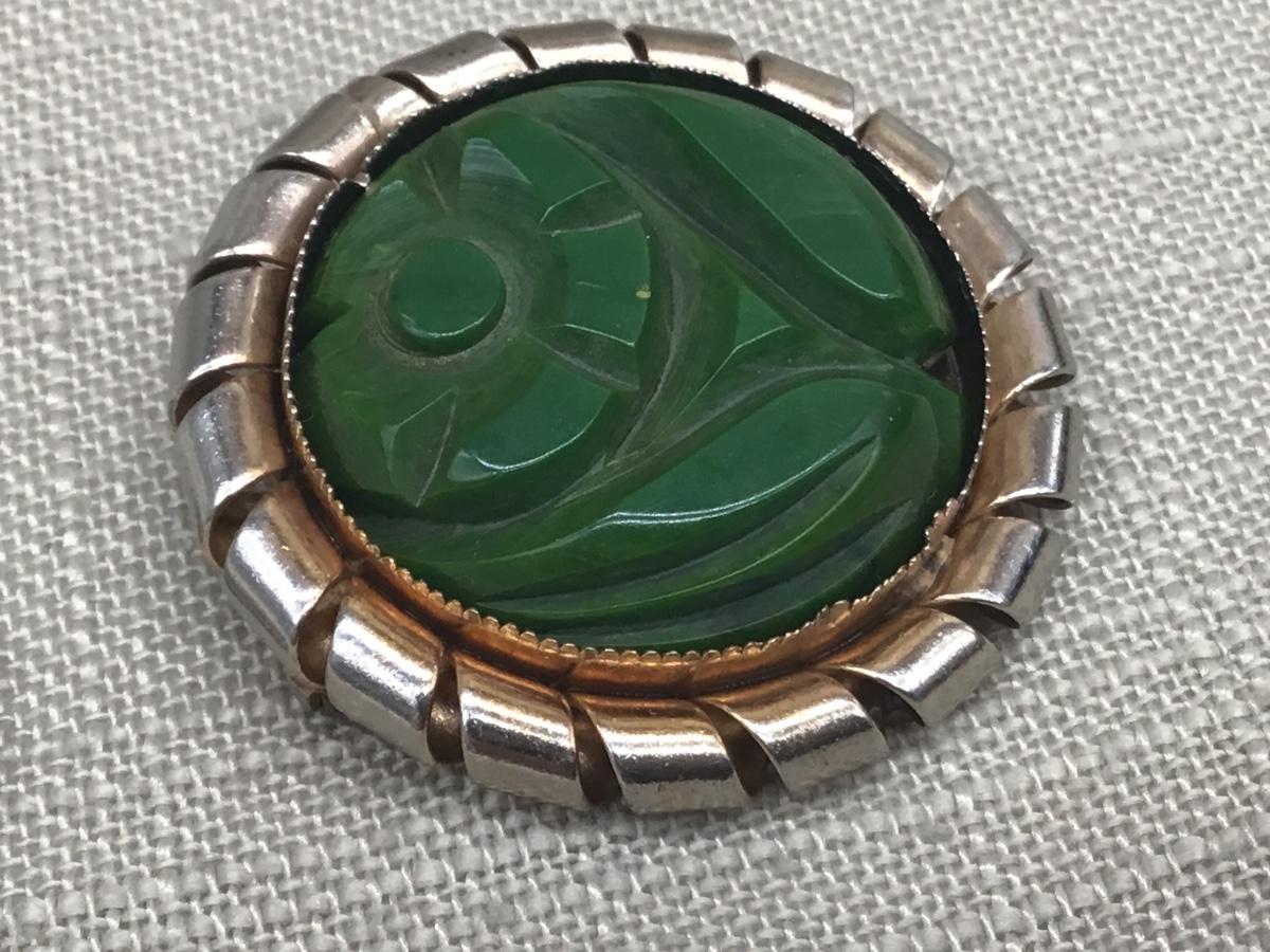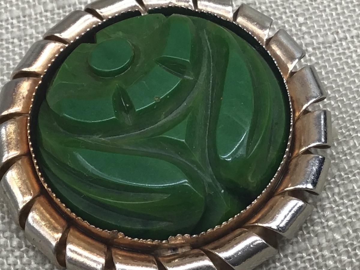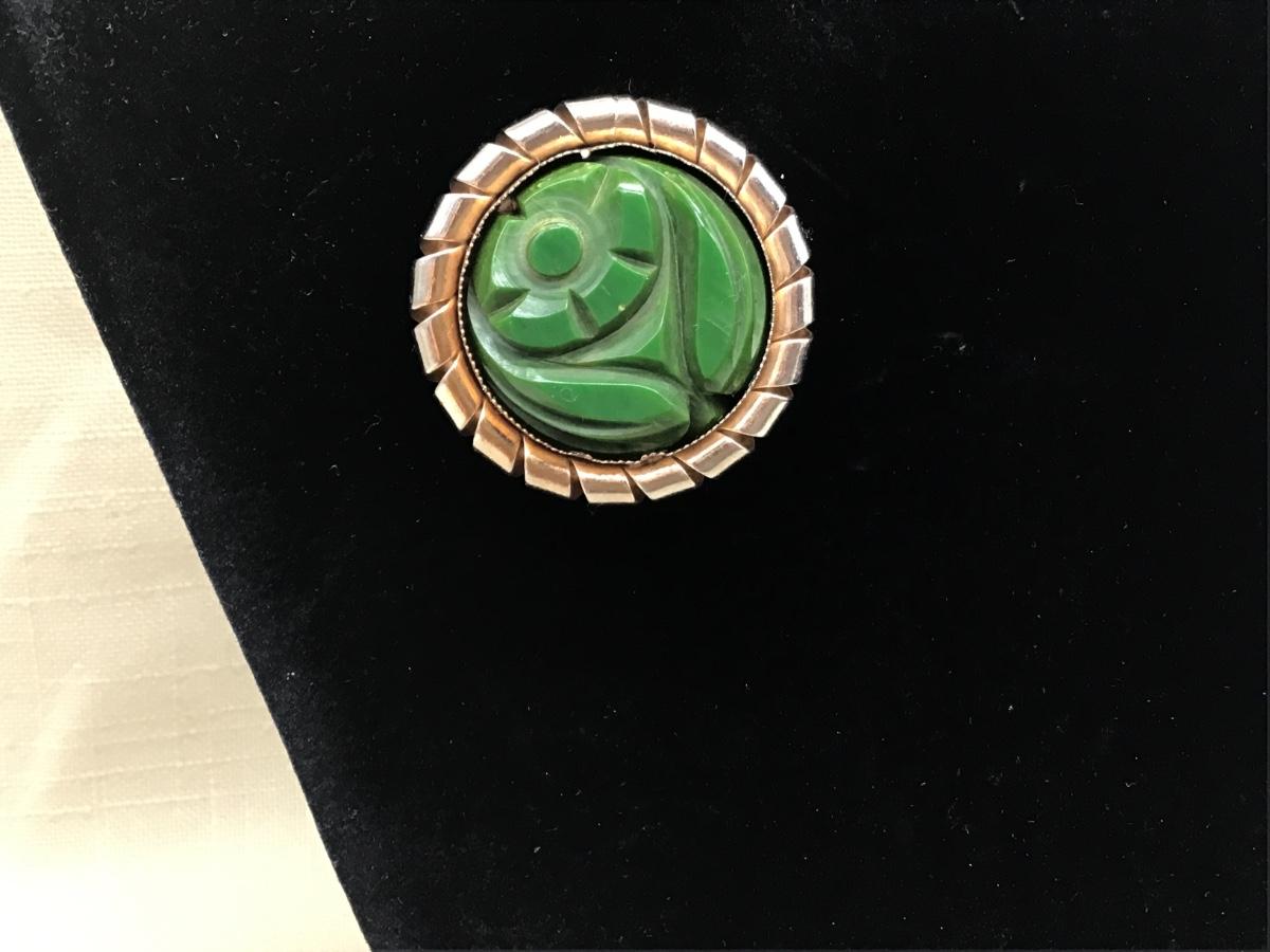 VINTAGE GREEN LUCITE/BAKELITE BROOCH PIN