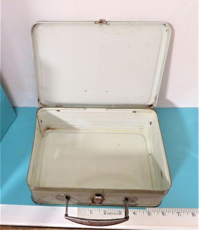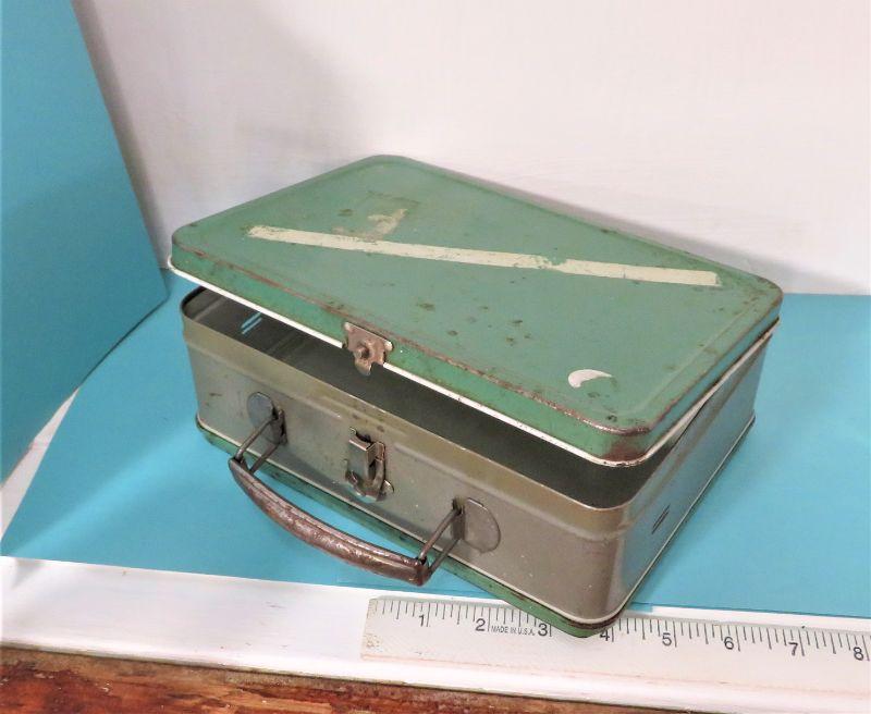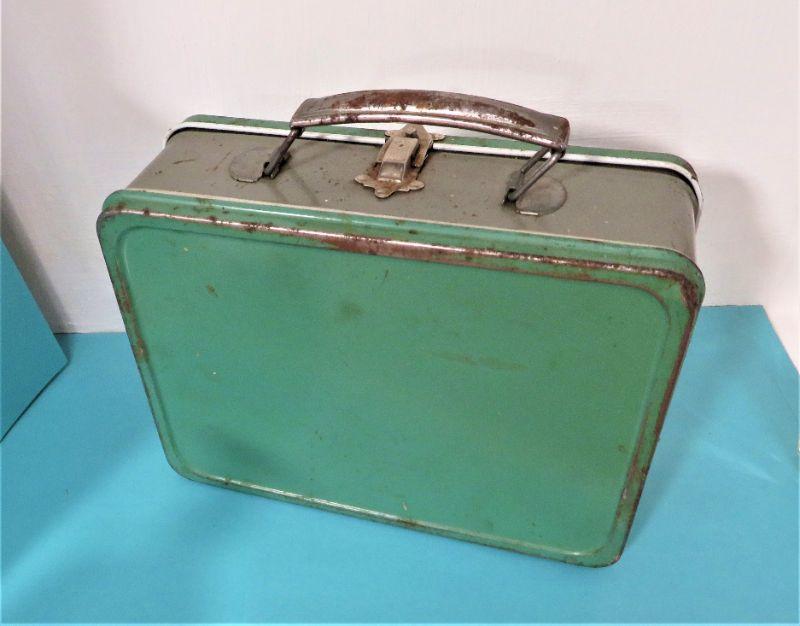 Vintage Tin GREEN Lunchbox. Please preview photos. In Good Condition for its age.