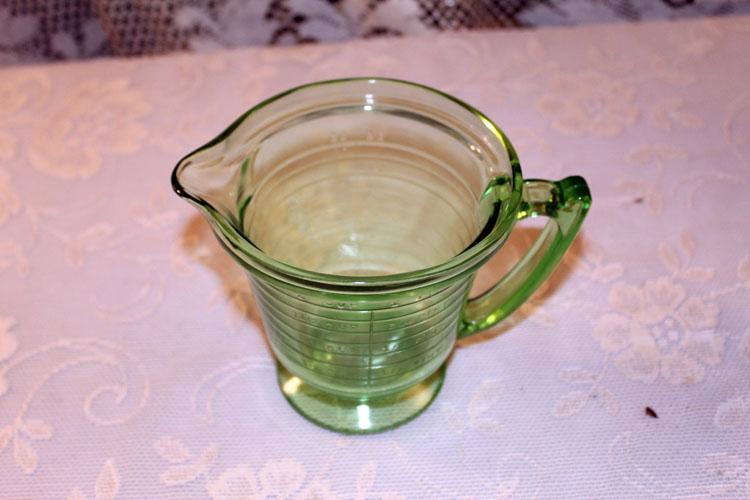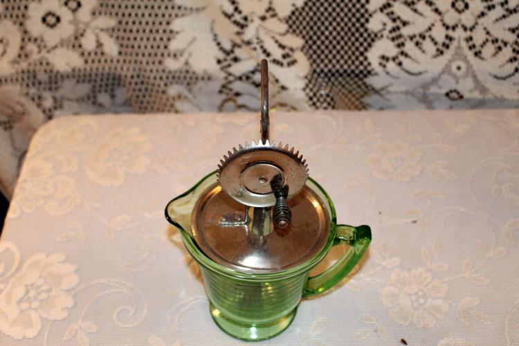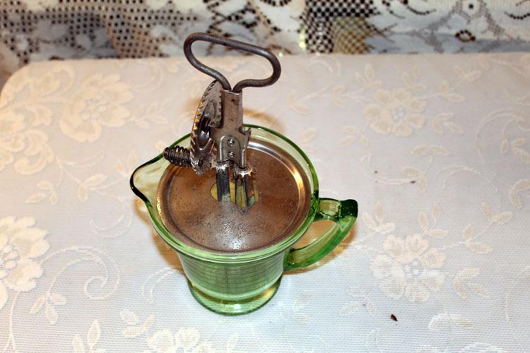 Vintage green measuring cup with fitted mixer