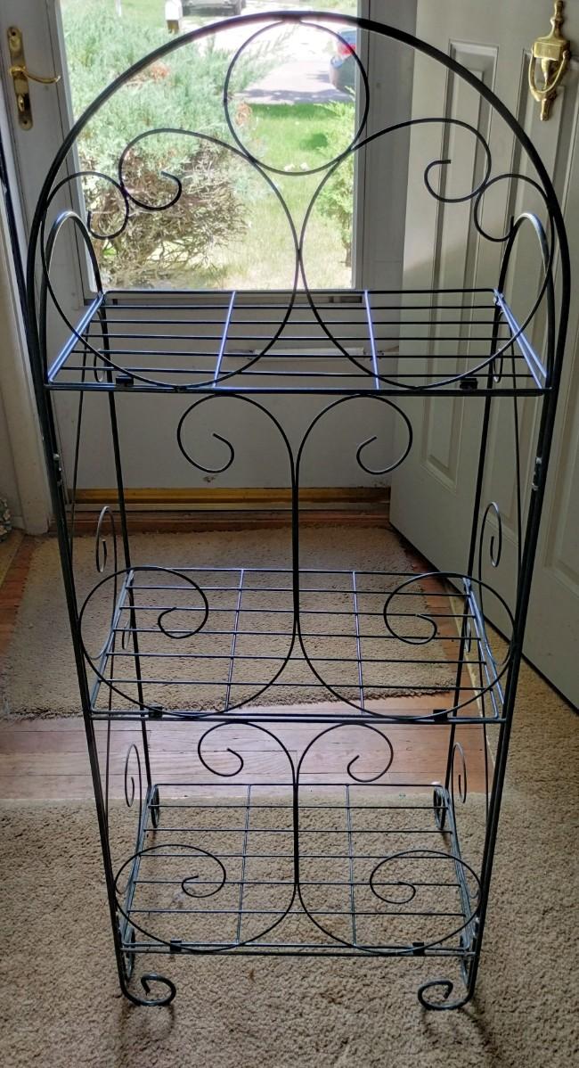 Vintage Green Metal Bakers Rack Bookshelf Plant Fern Stand 3 Tiers
