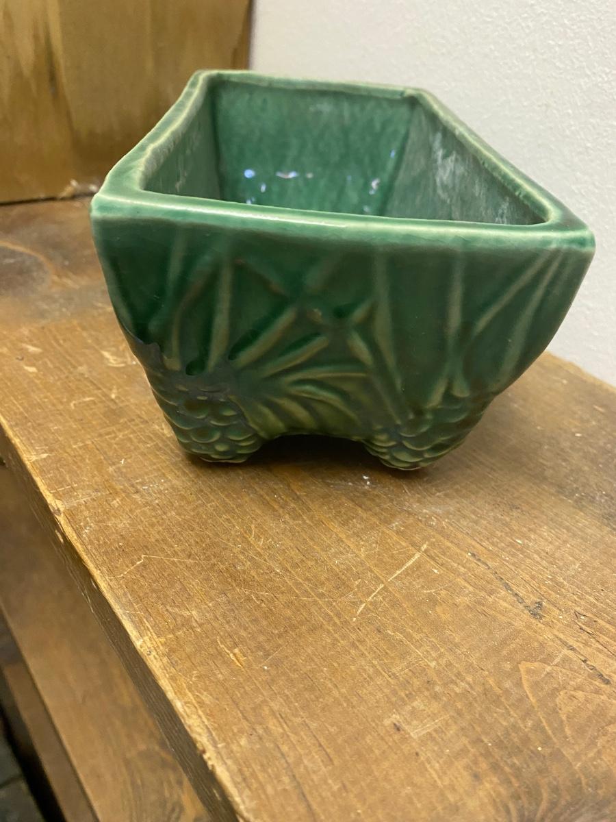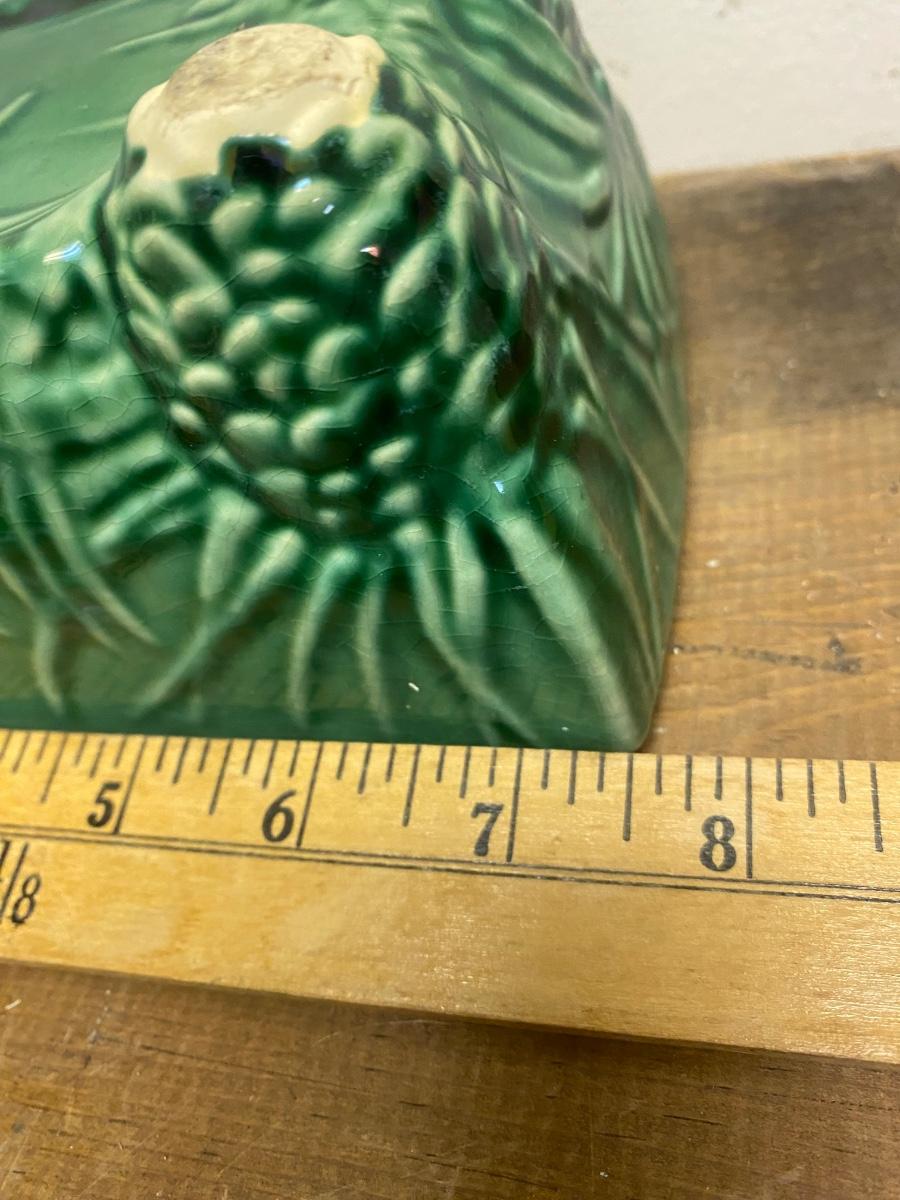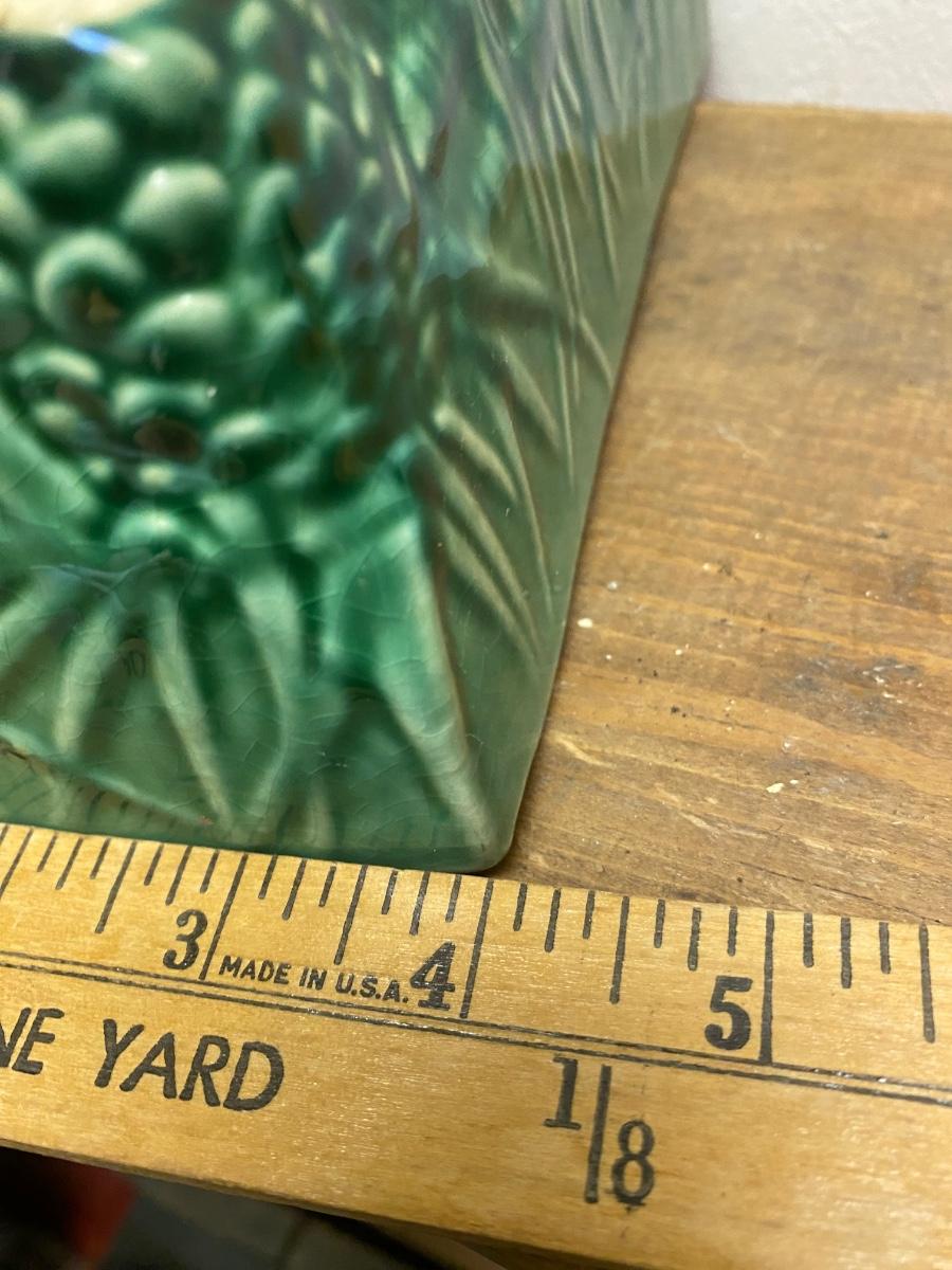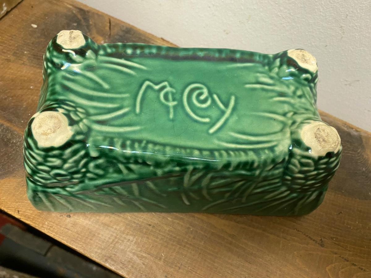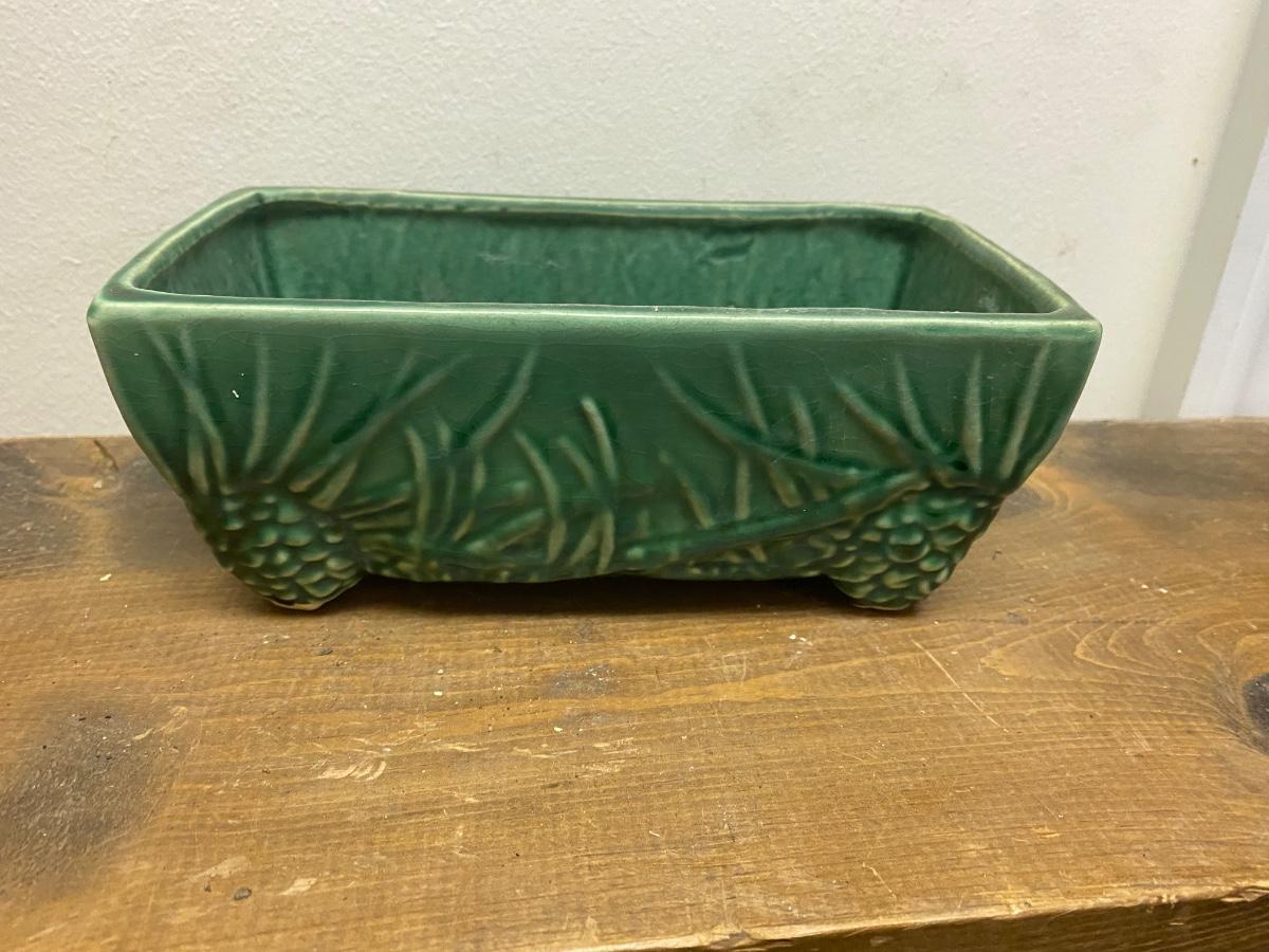 Vintage Blue Green Mid Century McCoy Rectangular Footed Planter with grass leaf motif
