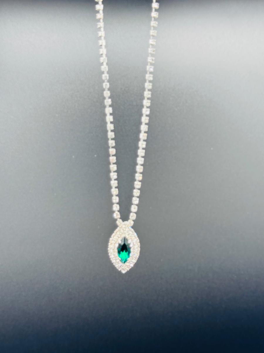 Vintage Green Rhinestone Crystal adjustable necklace.