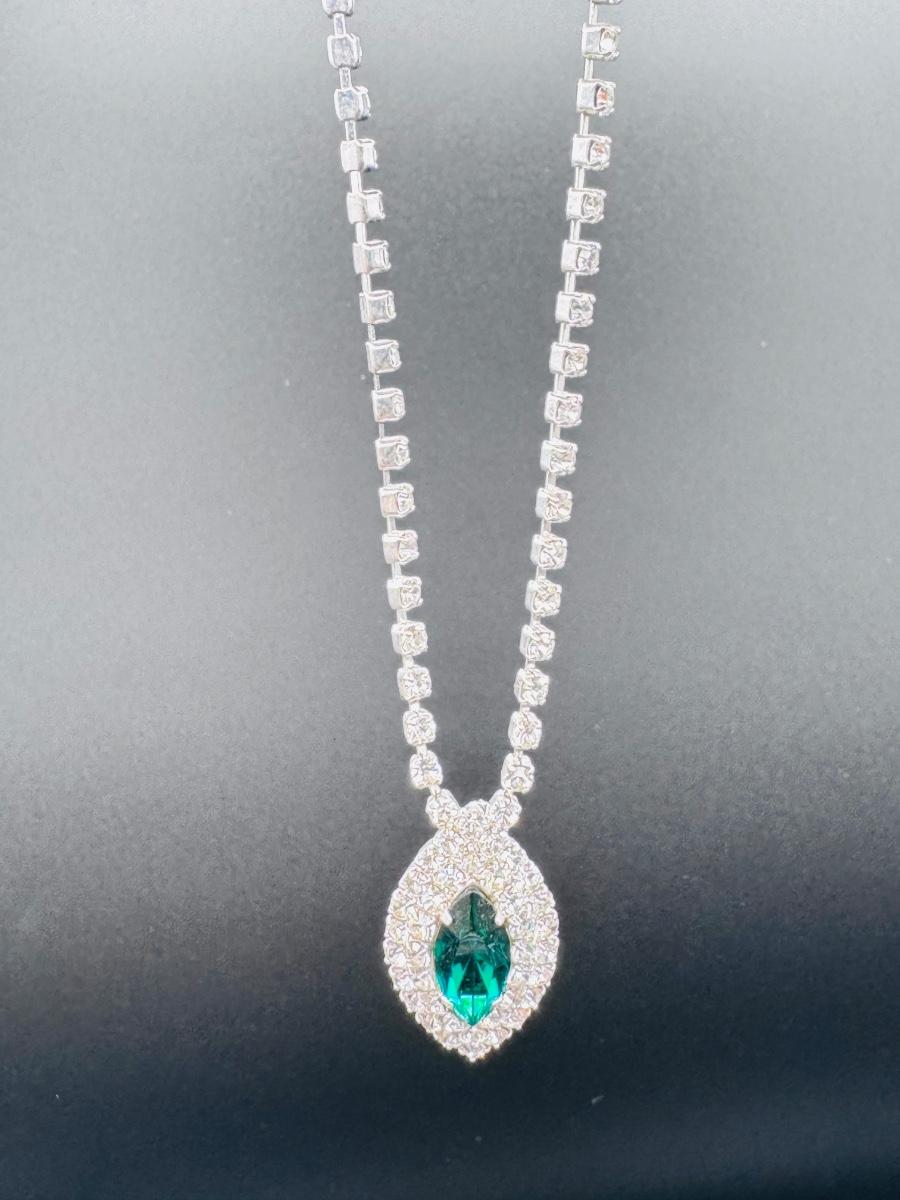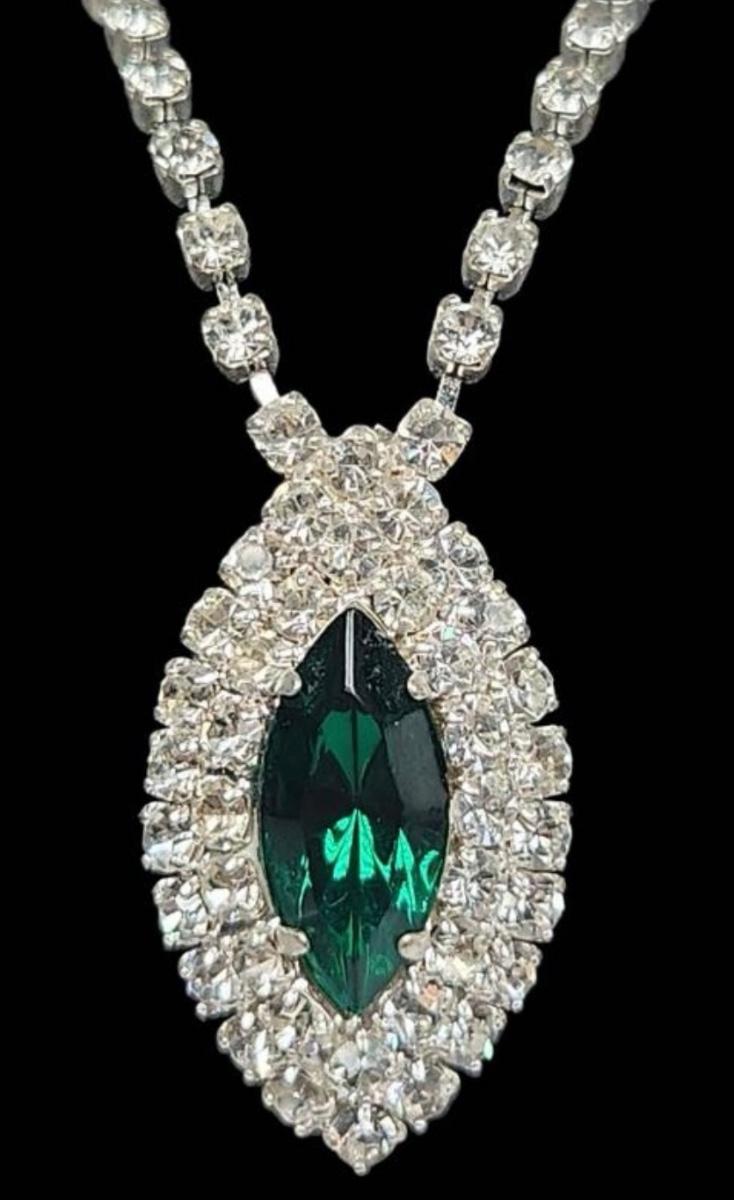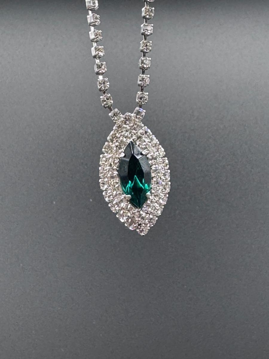 Vintage Green Rhinestone Crystal adjustable necklace.