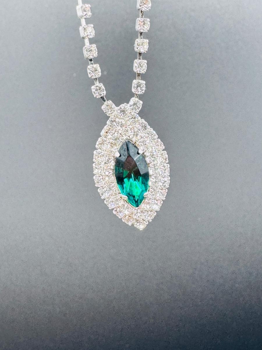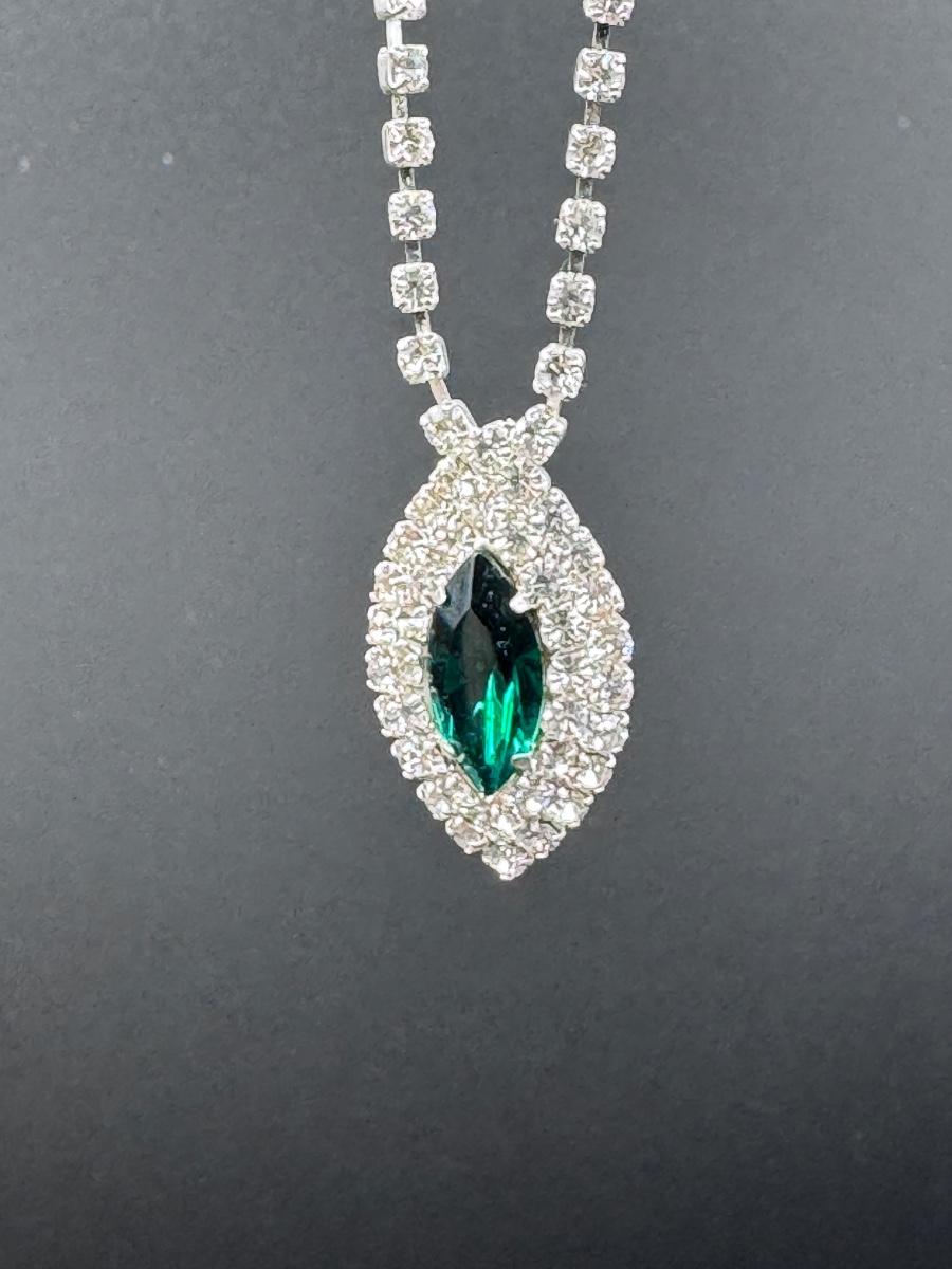 Vintage Green Rhinestone Crystal adjustable necklace.