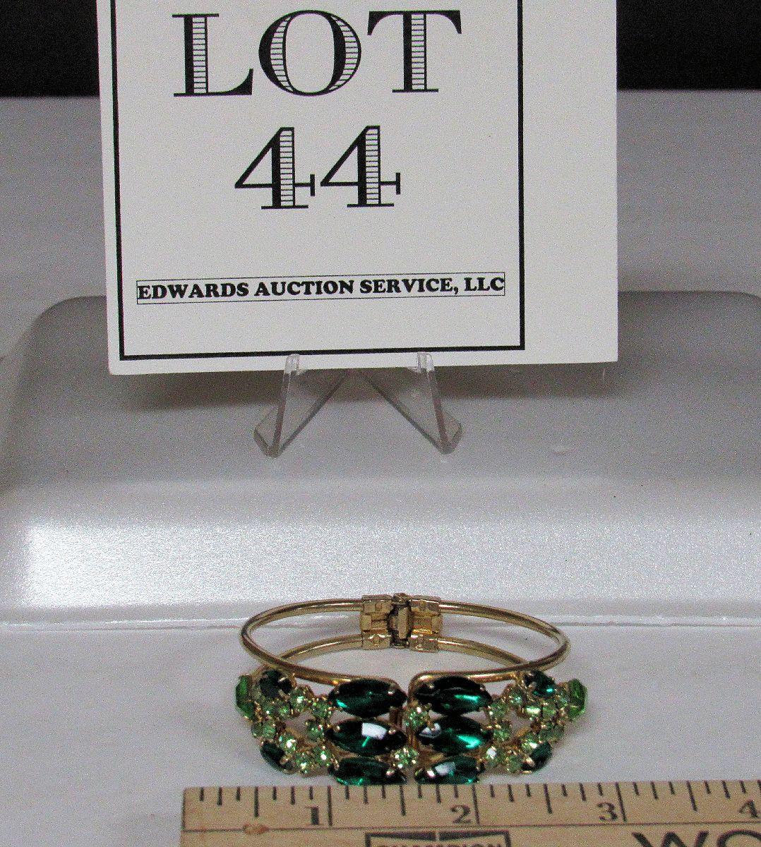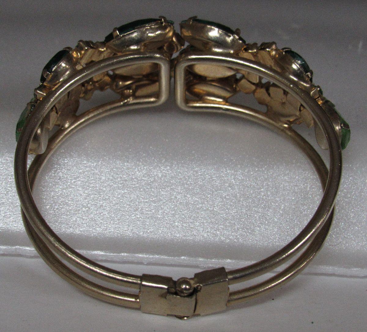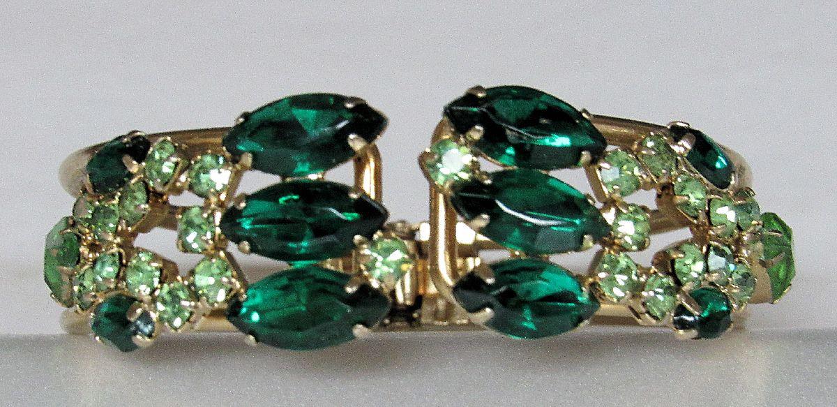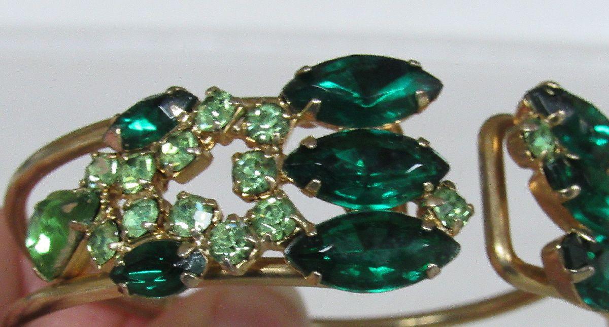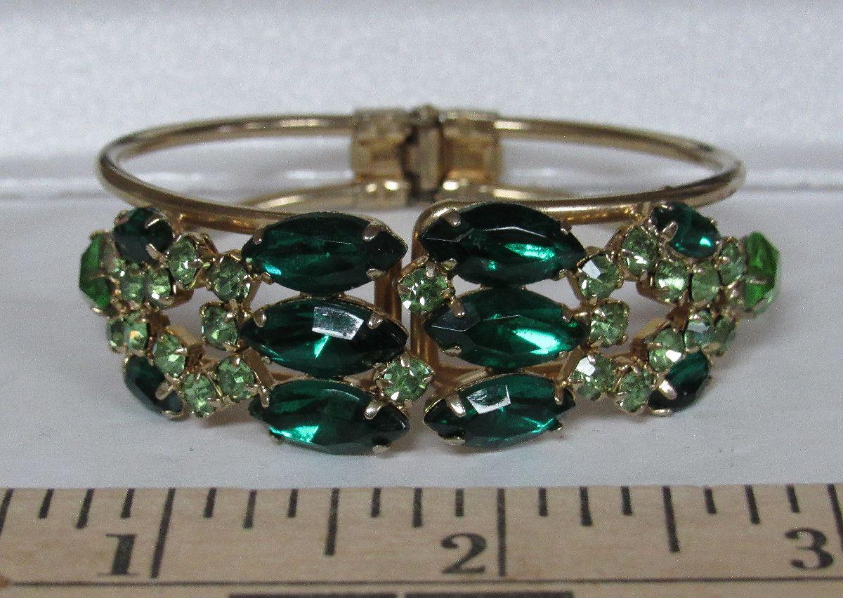 Vintage Green  Rhinestone Cuff Bracelet, Goldtone