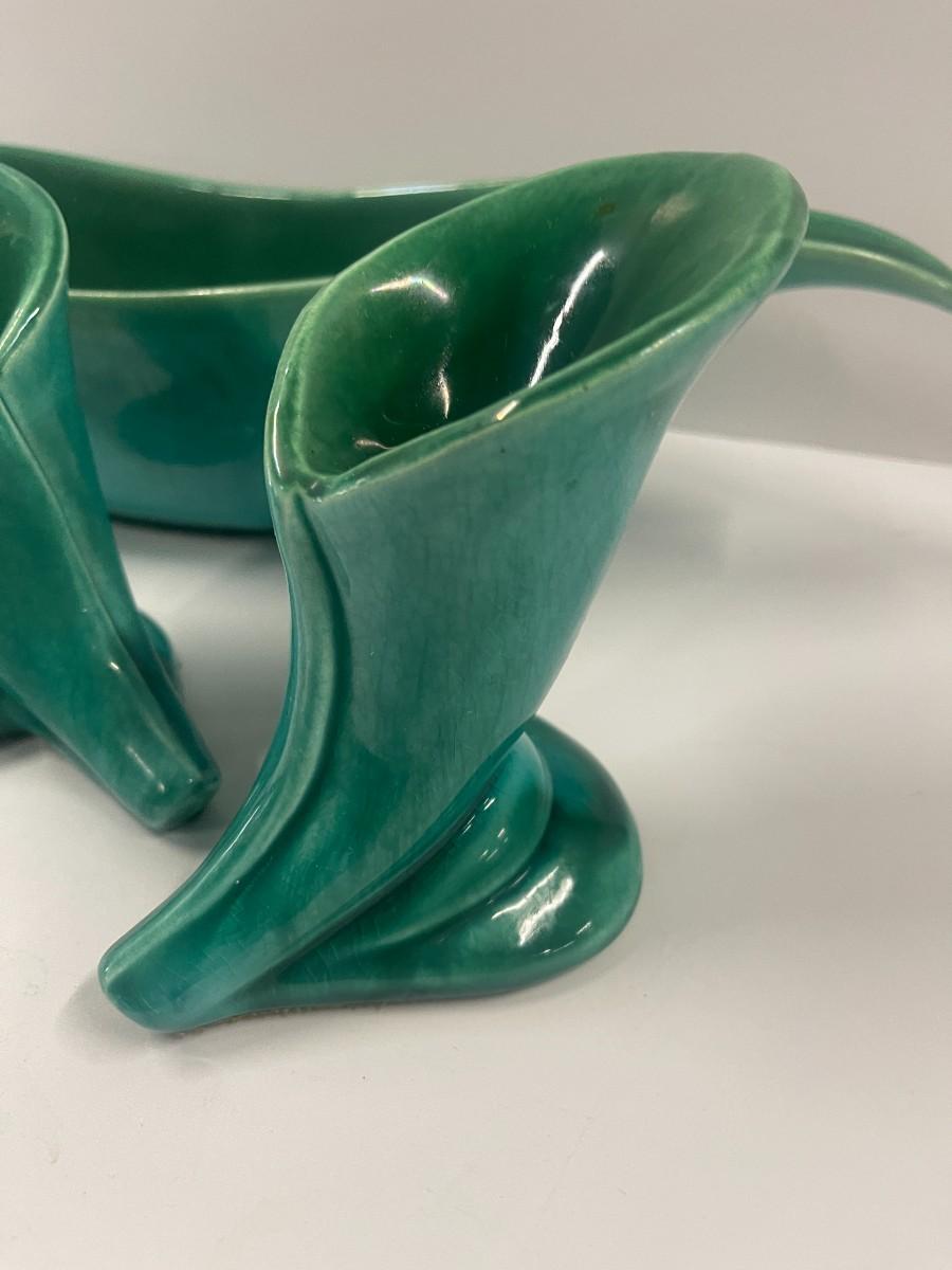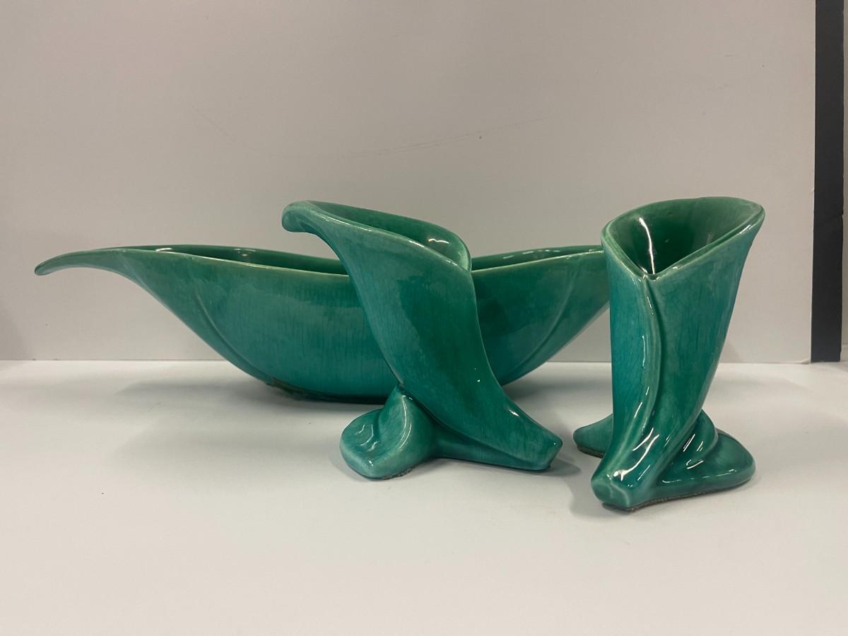 Vintage Green Royal Haeger Planter & Candlestick Set