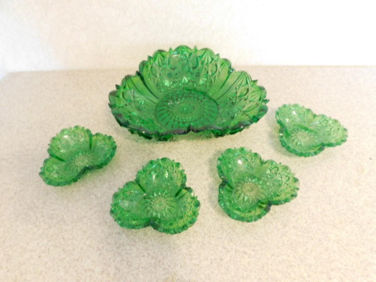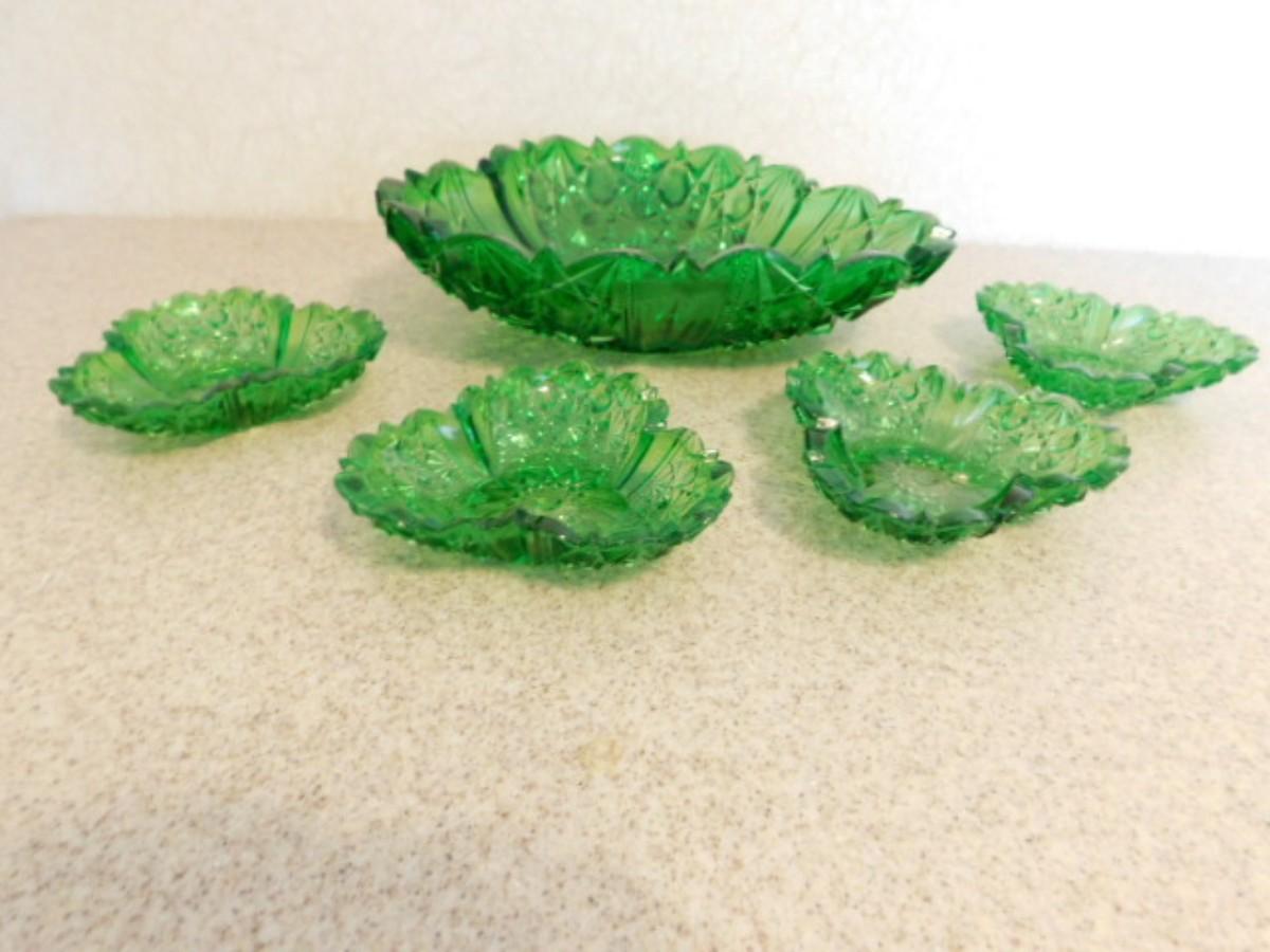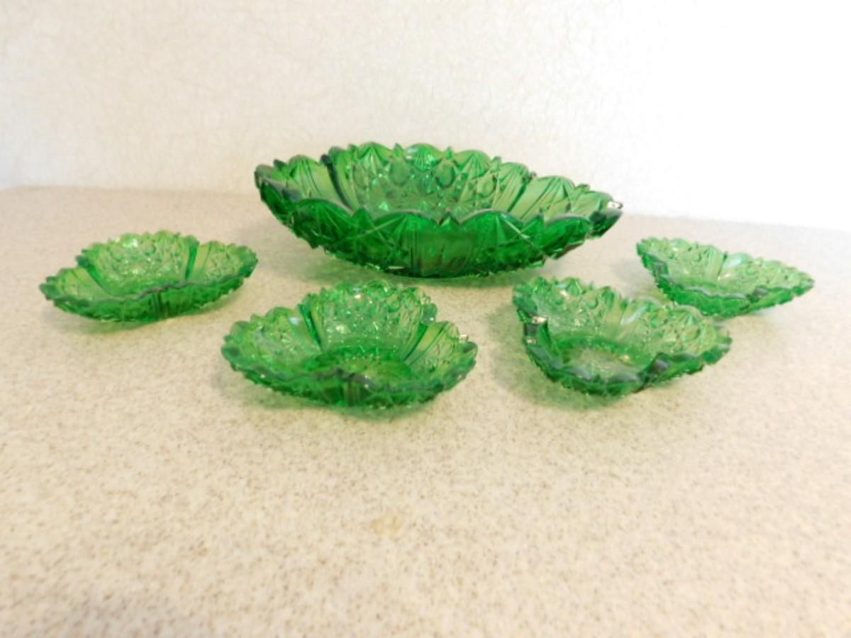 Vintage Green Sawtooth Edge Fruit and Berry Bowl Set