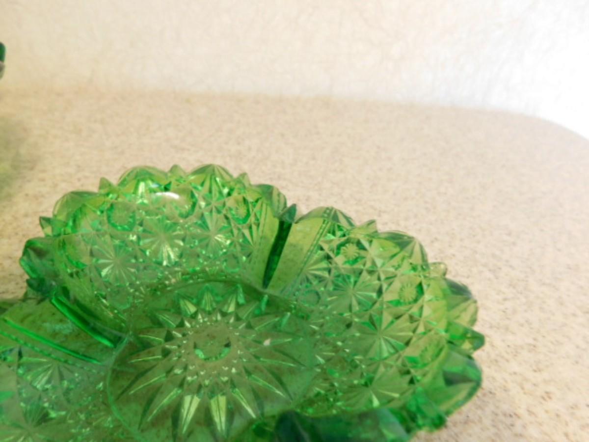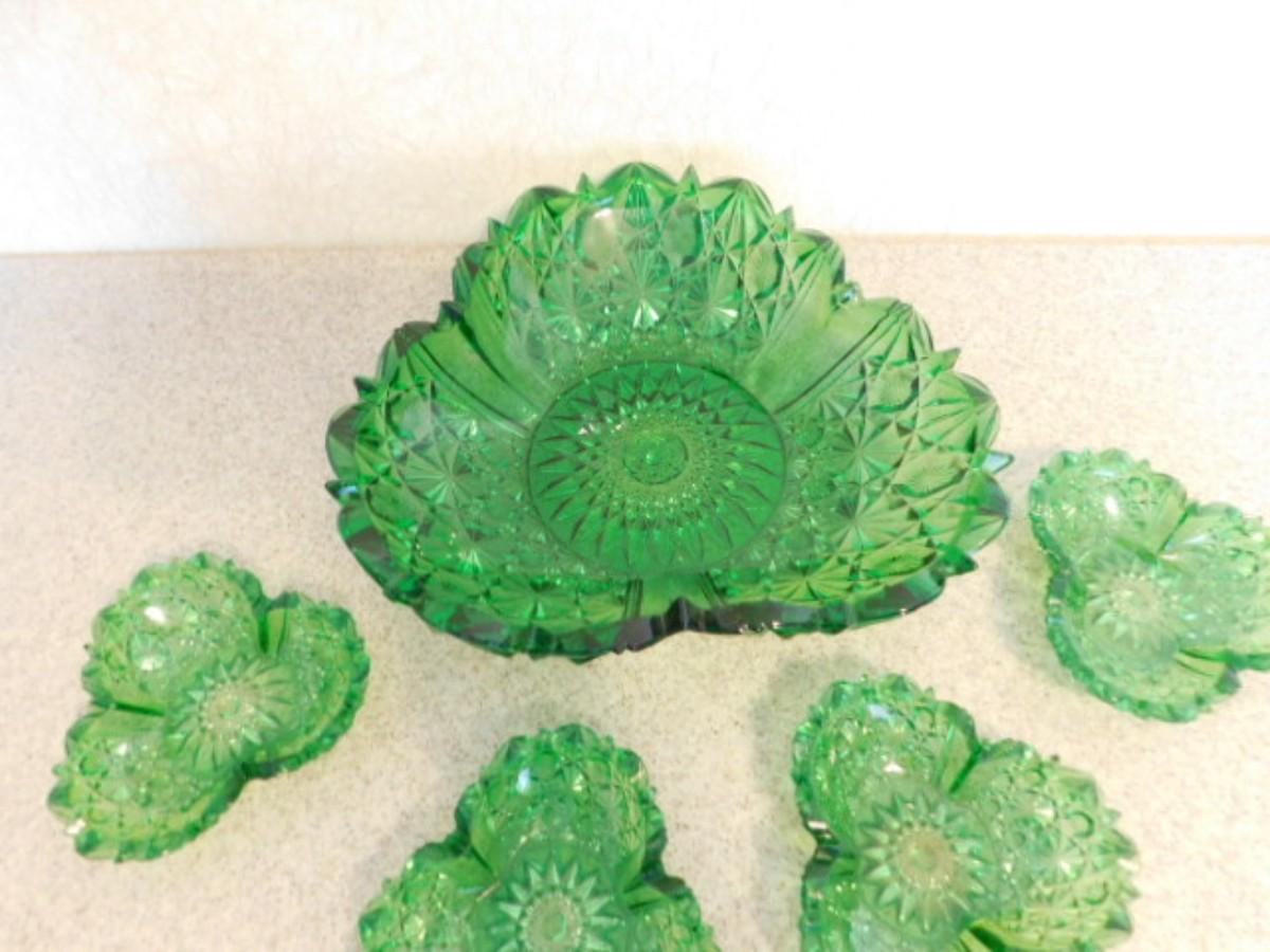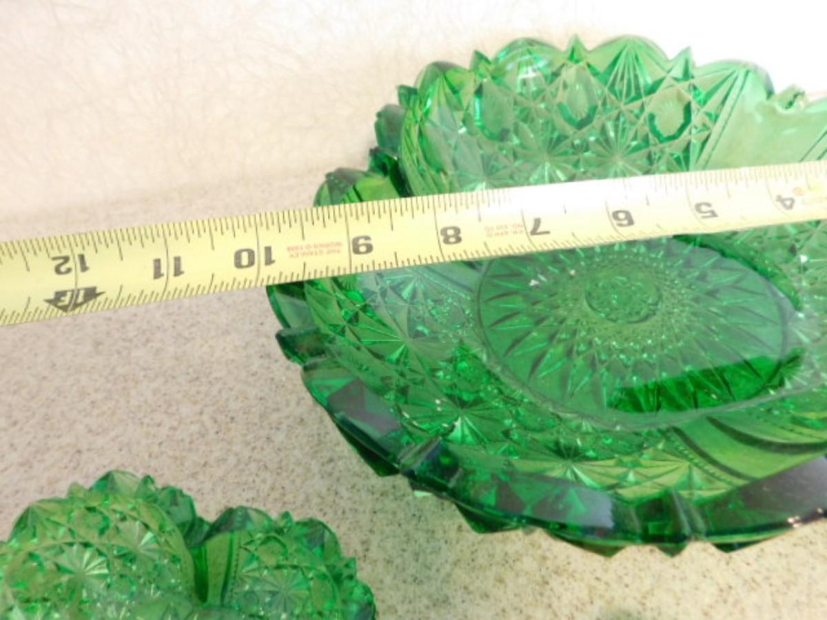 Vintage Green Sawtooth Edge Fruit and Berry Bowl Set