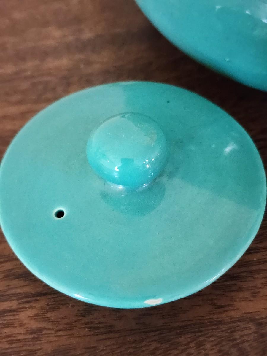 Good condition. Small chip on tip of spout. Tiny flake off of lid. No other damage - see photos for details.