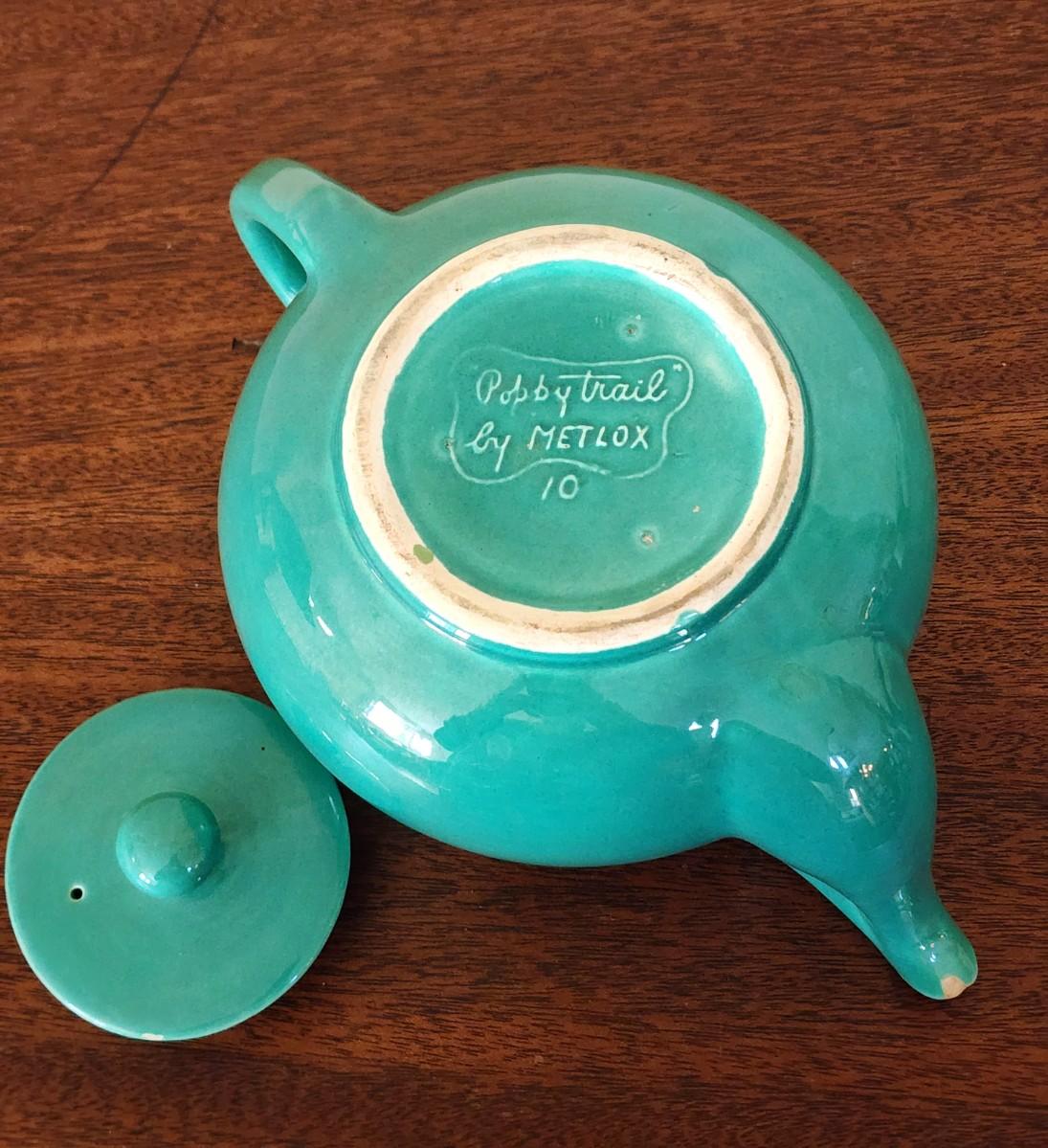 Vintage Green Teapot tea pot Poppy Trail by Metlox.