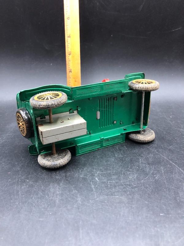 Vintage Green Tin Toy Pull Back Jeep Car Japan