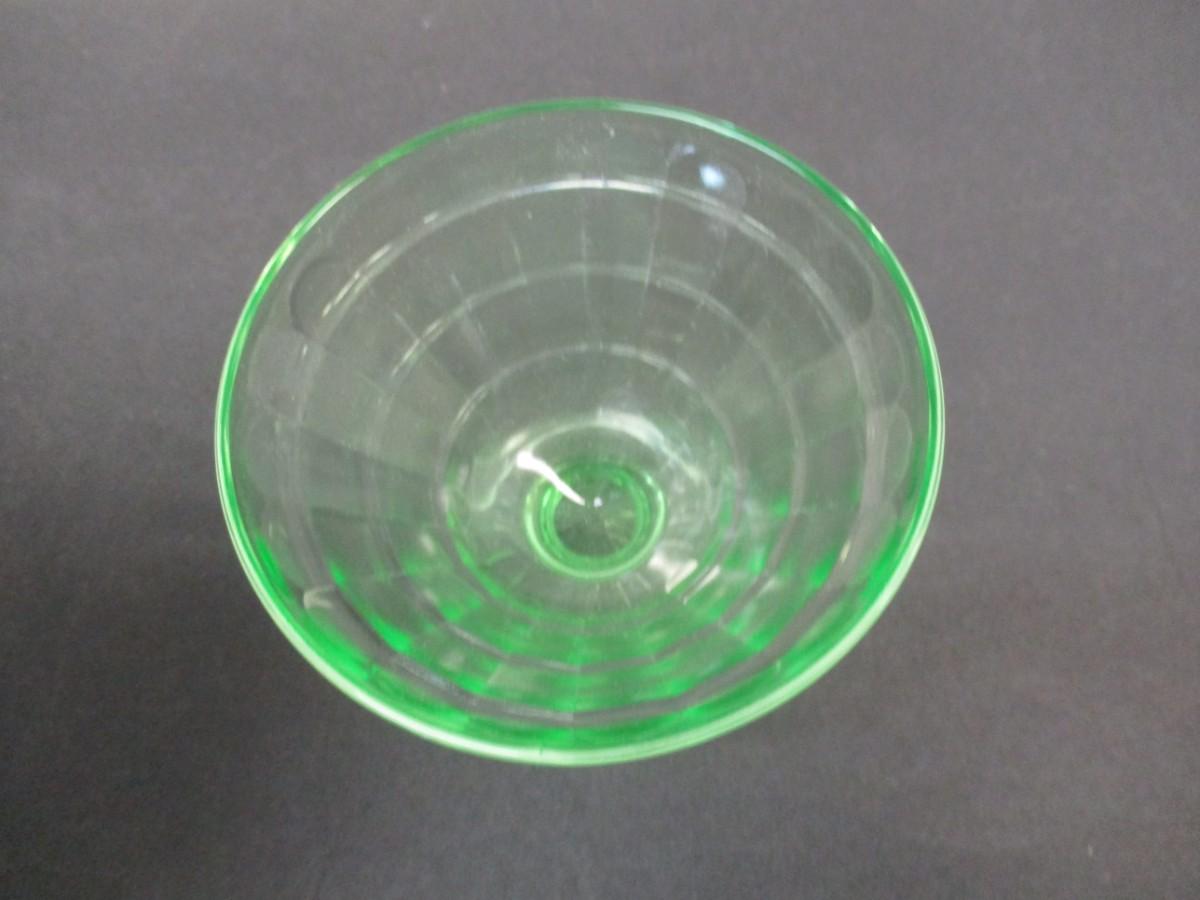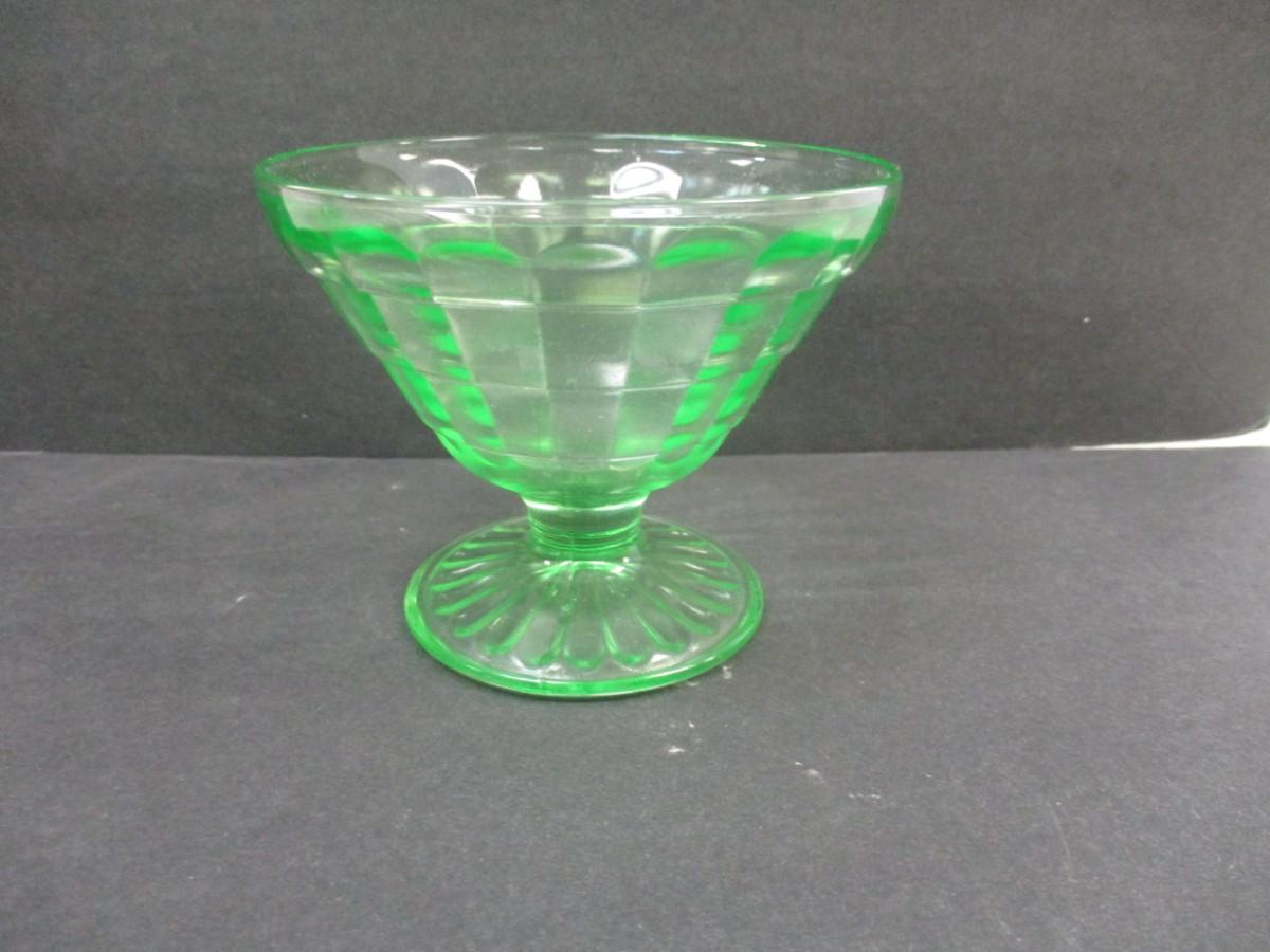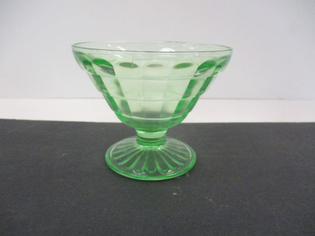 Vintage Green Uranium Glass Sherbet Dessert Cup Ribbed Block