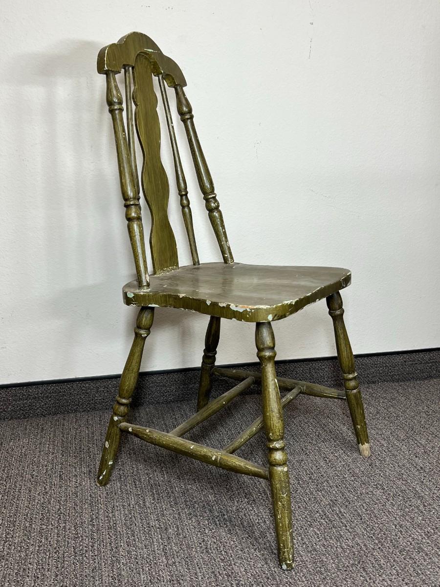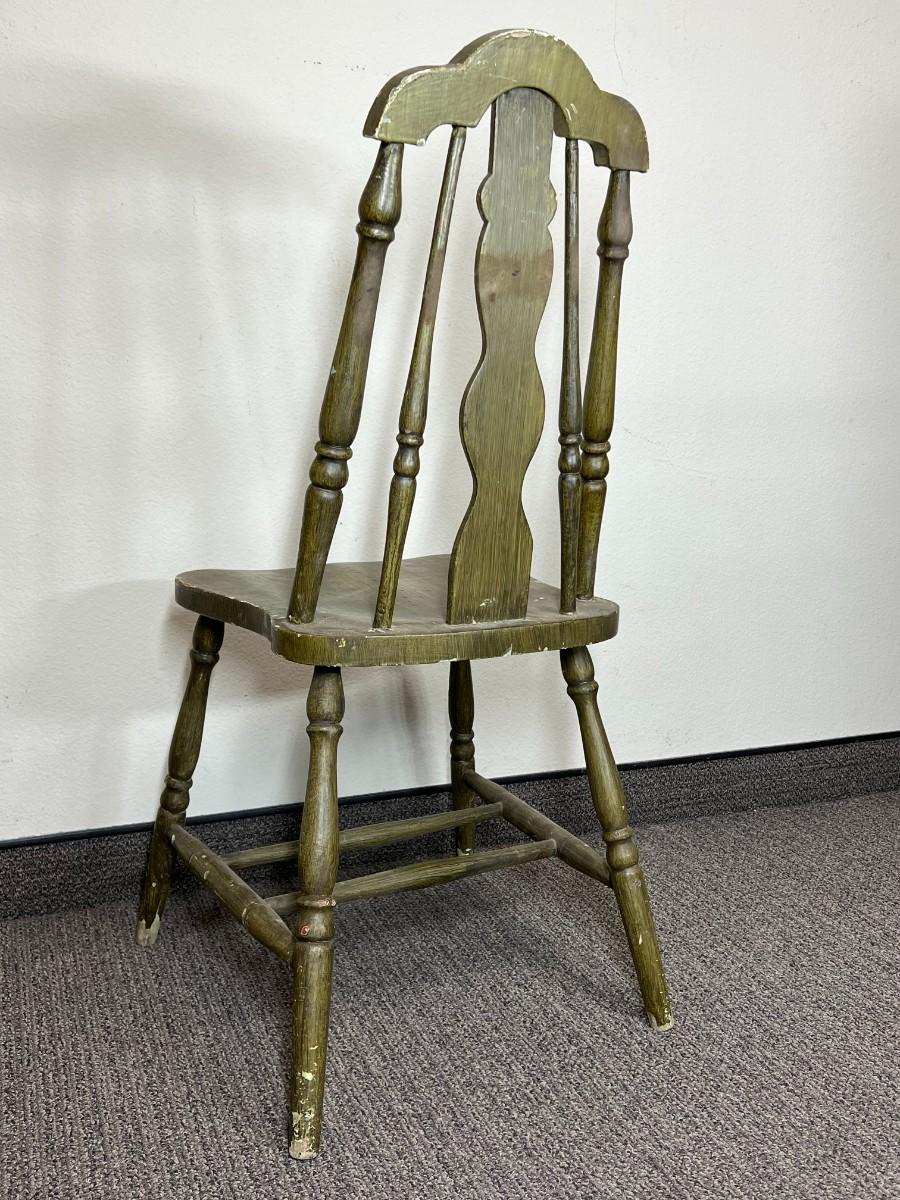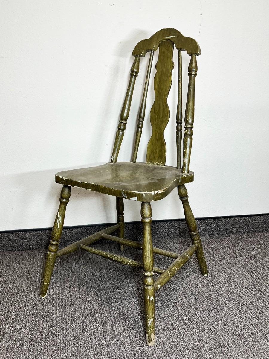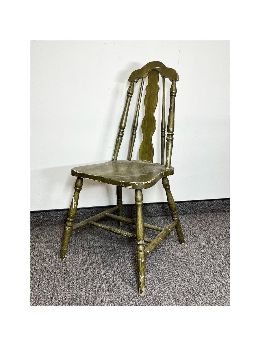 Vintage Avocado Green Wood Shabby Chic Accent Dining Room Chair