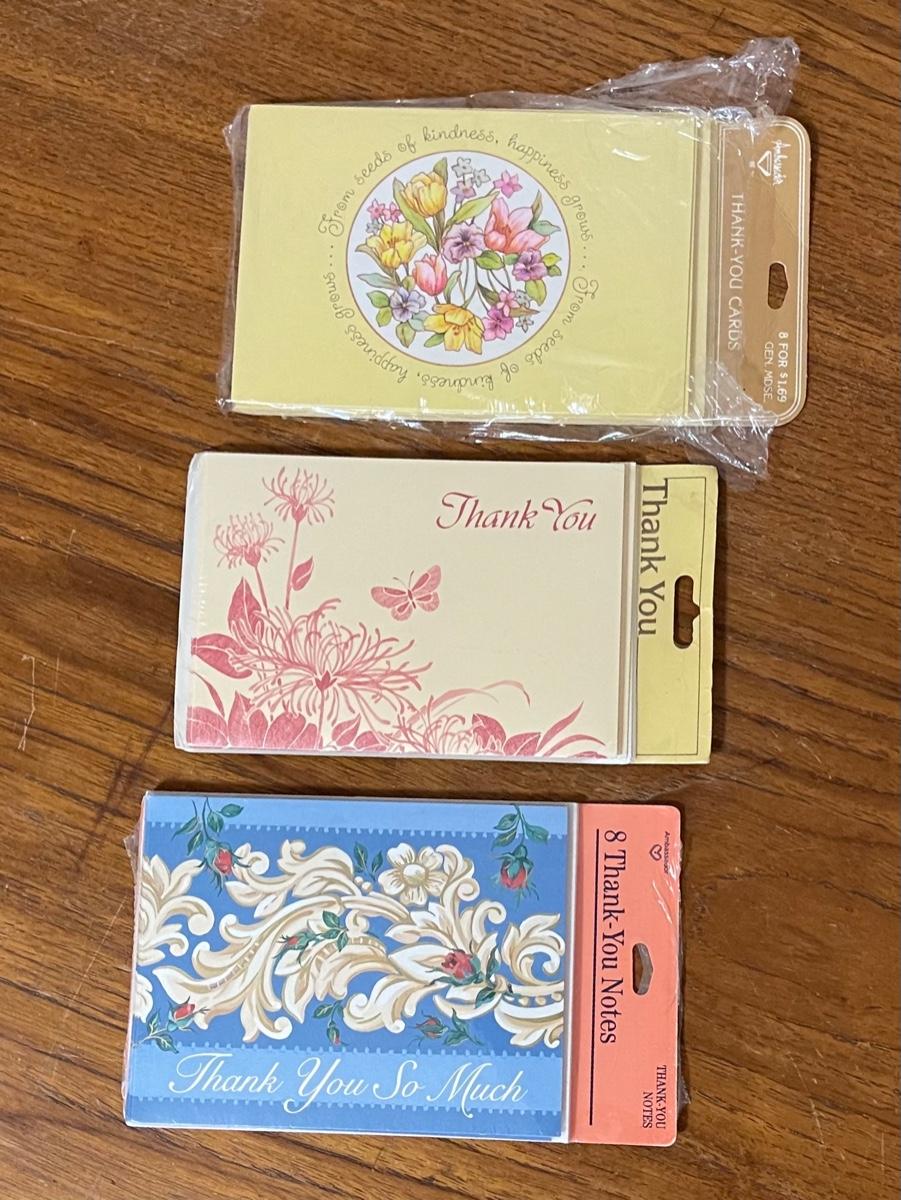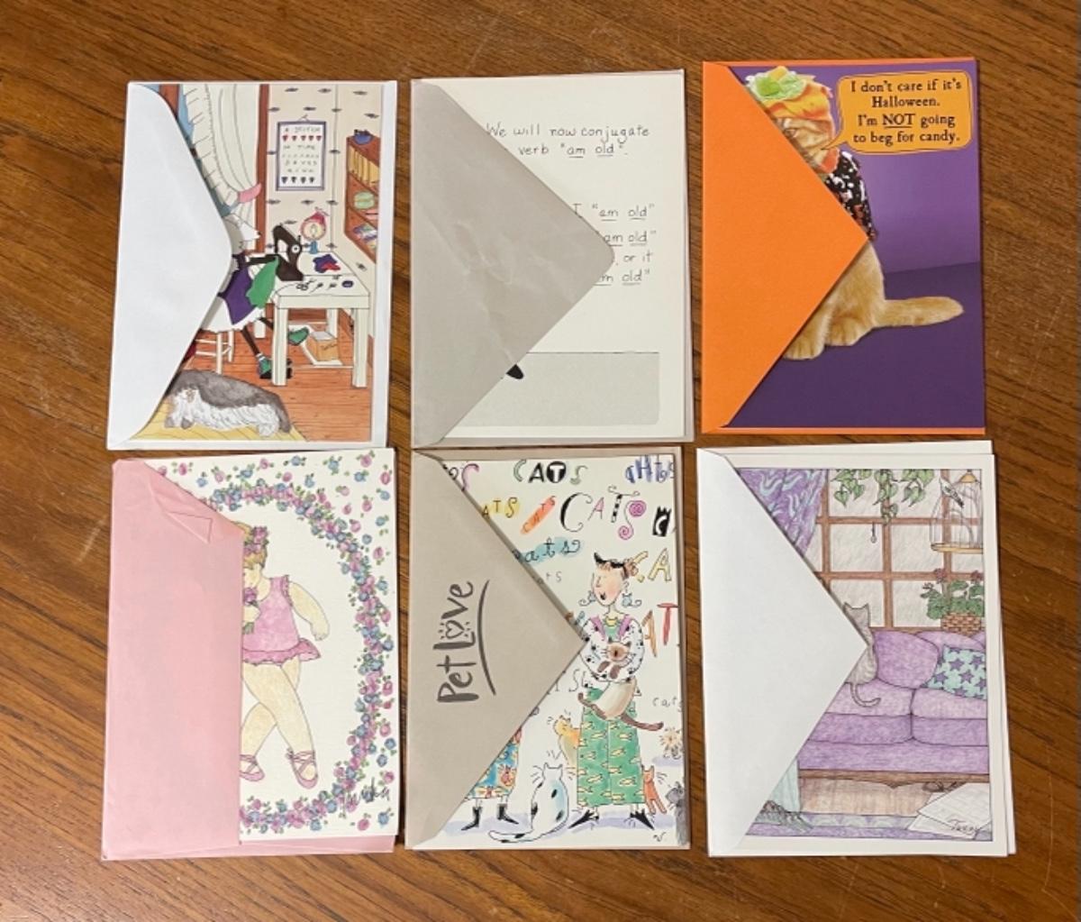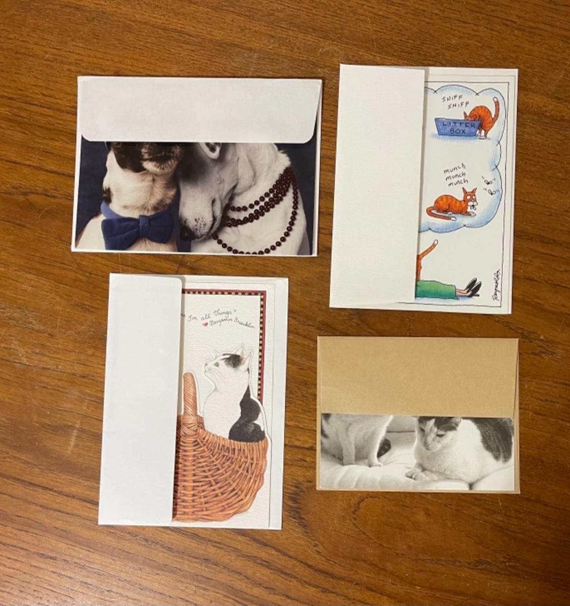 Lot of 21 cards with envelopes - all nice quality and mostly cat themed. Also, 3 packages of Thank you cards by Hallmark (2 unopened, 1 mostly full). Shipping available.