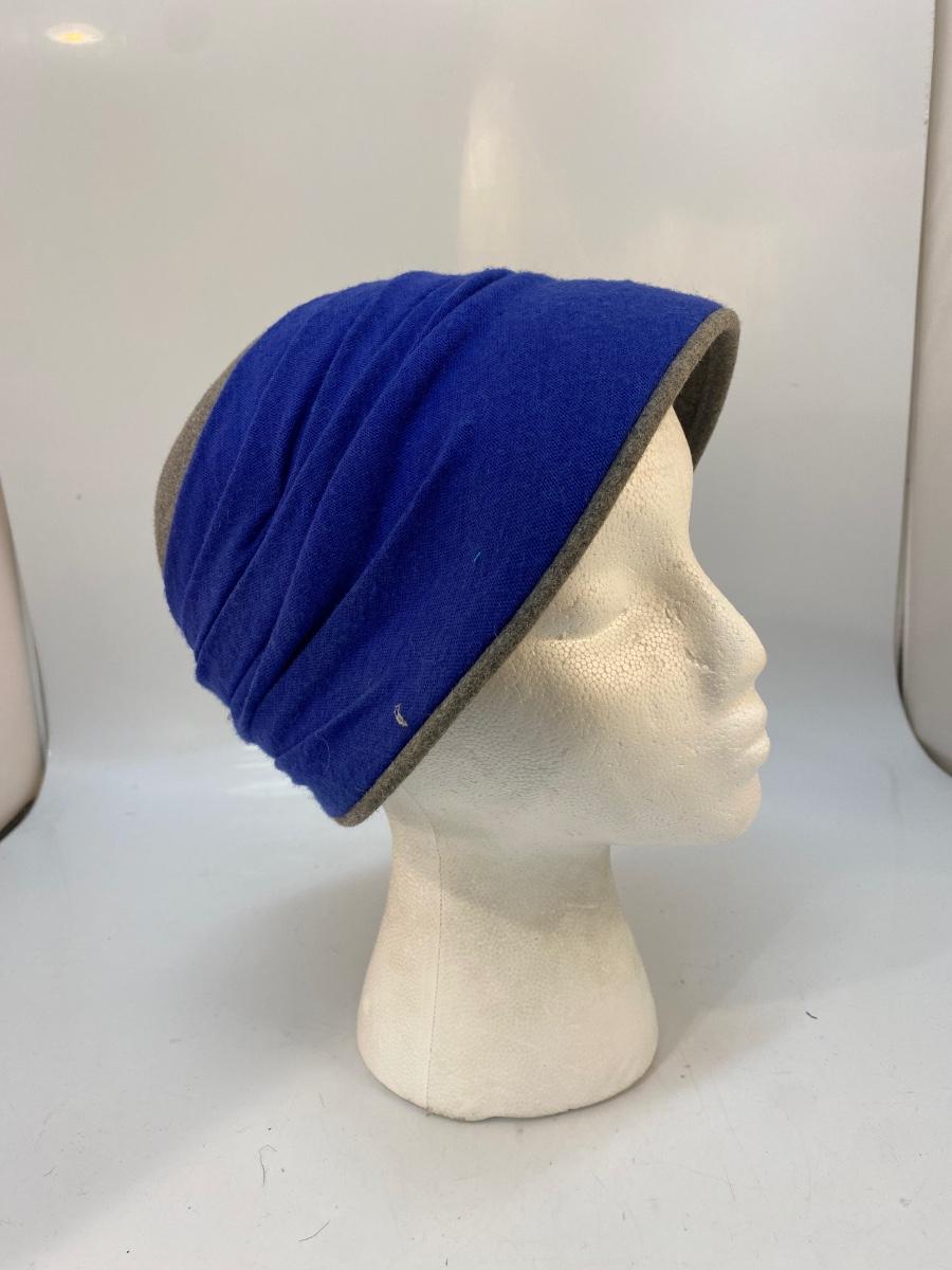 Vintage Grey and Blue Wool Jersey Knit Cloche Hat Cap