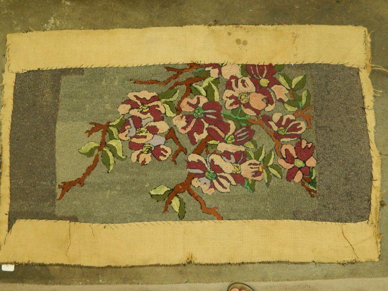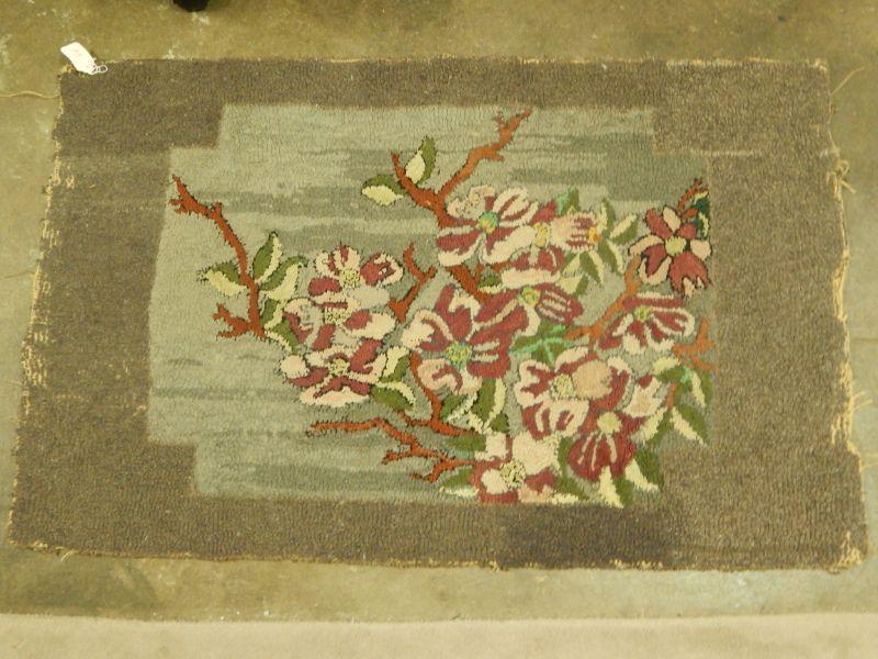 Vintage Grey & Floral Hooked Rug - 28" x 48"