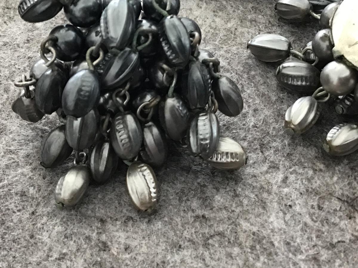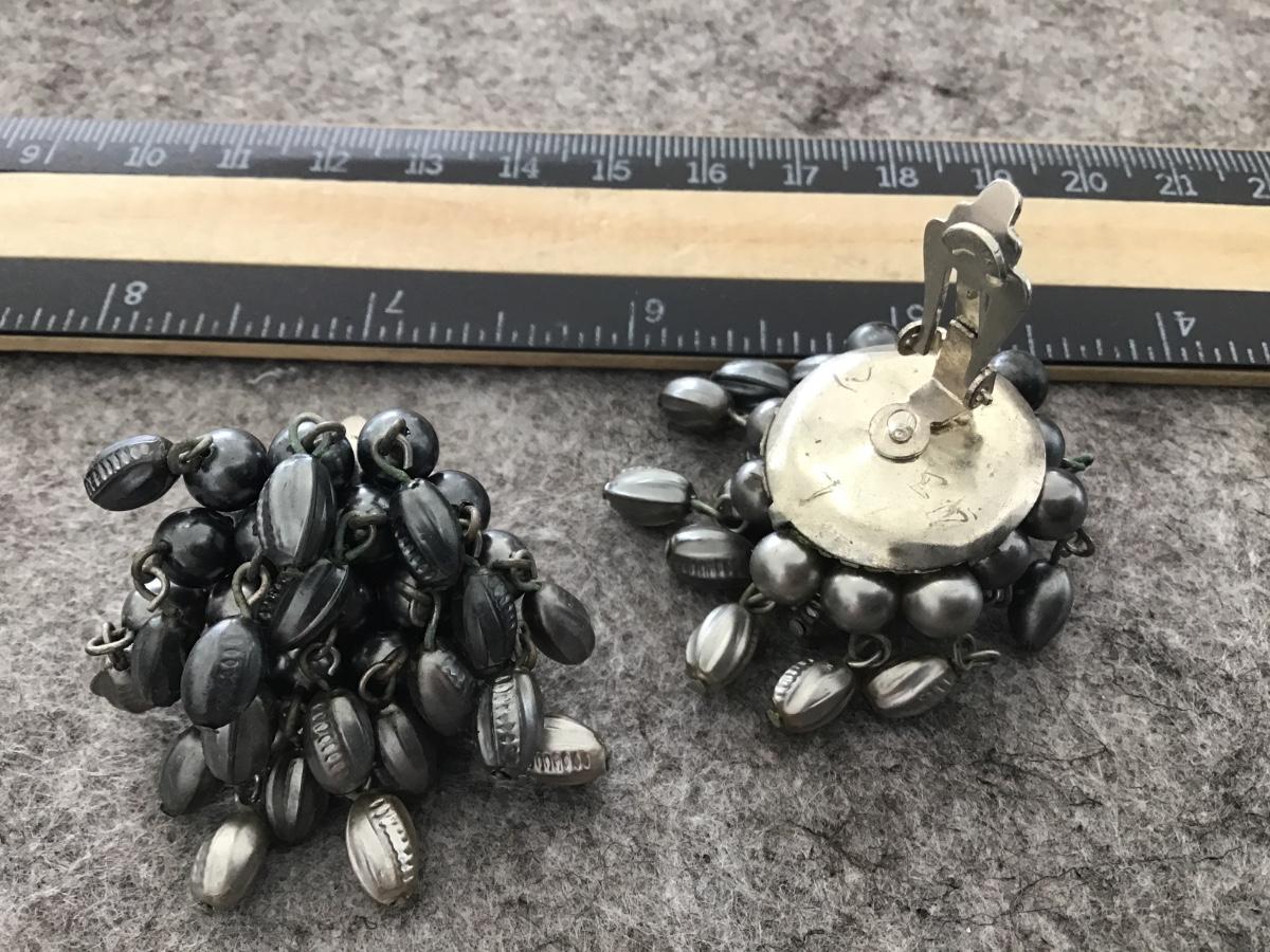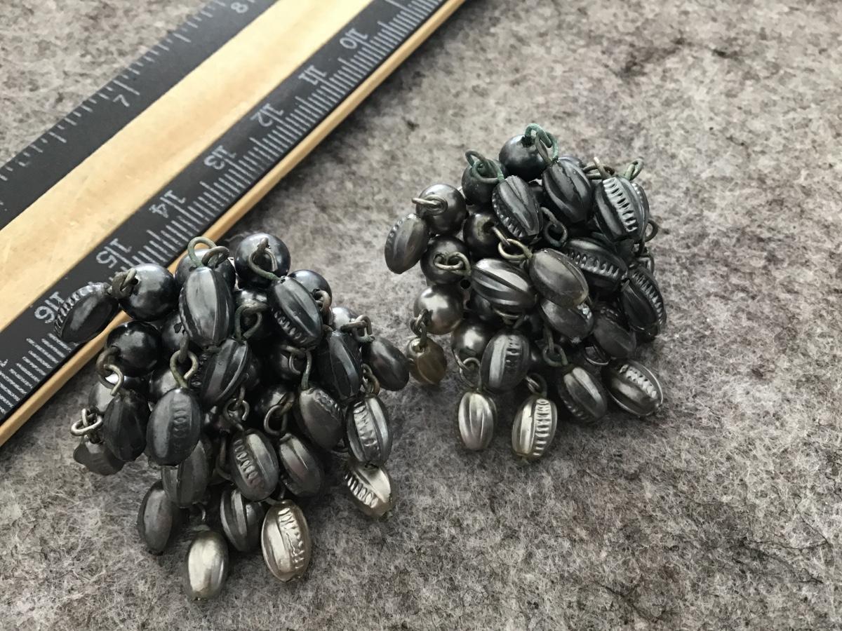 Vintage Grey Pod Bead Metal Cluster Earrings