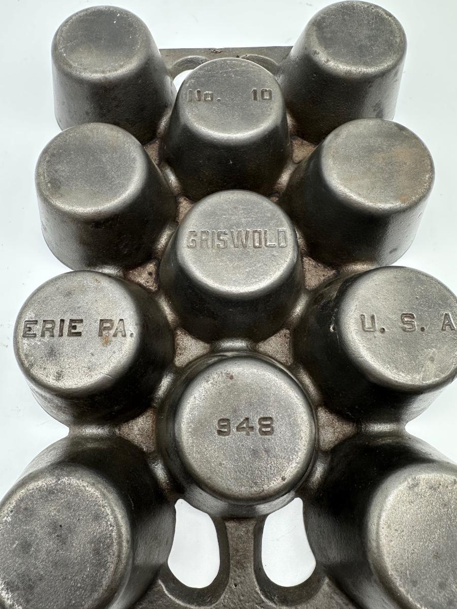 Vintage Griswold Cast Iron Muffin / Gem Pan #948 No. 10 – Erie, PA USA