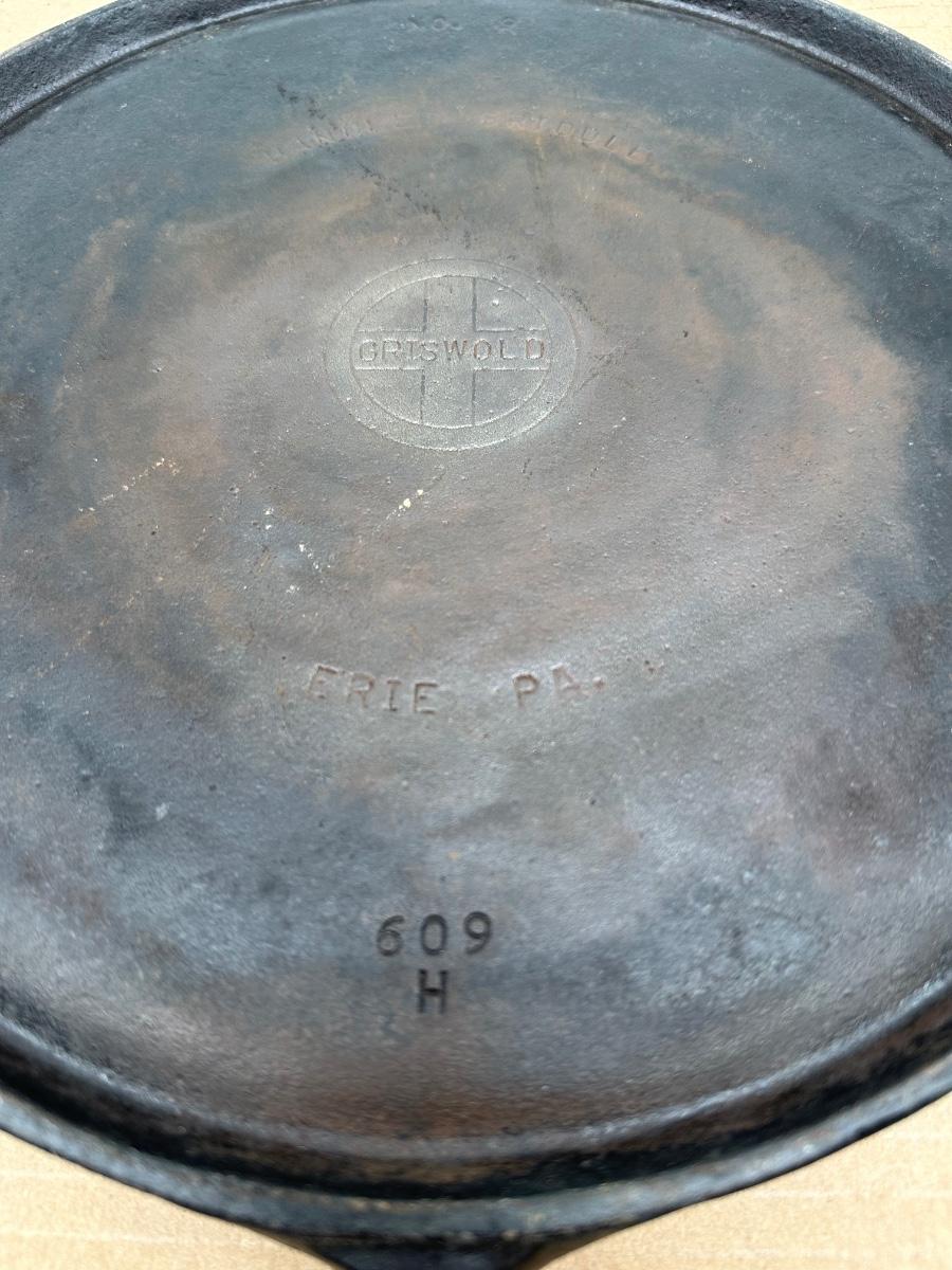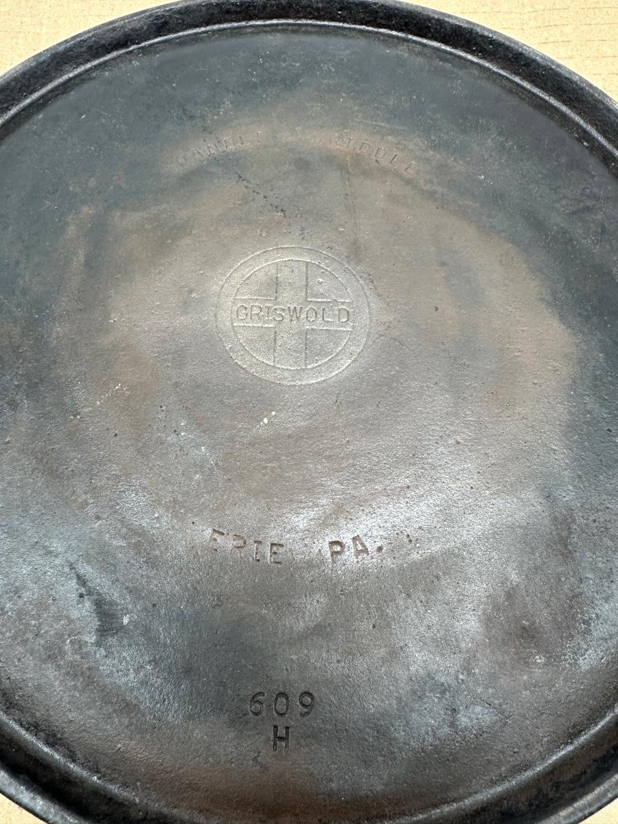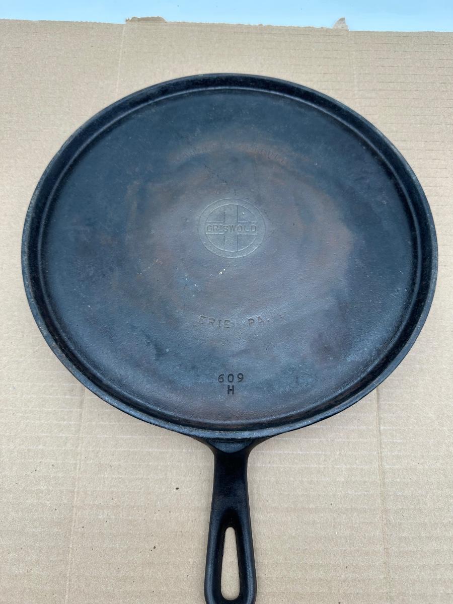 Vintage Griswold Cast Iron Round Griddle No. 9 – Erie, PA – Model 609 H