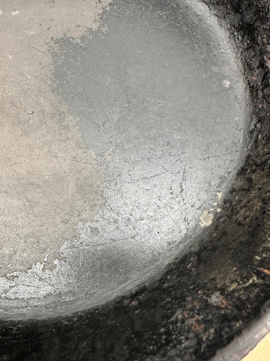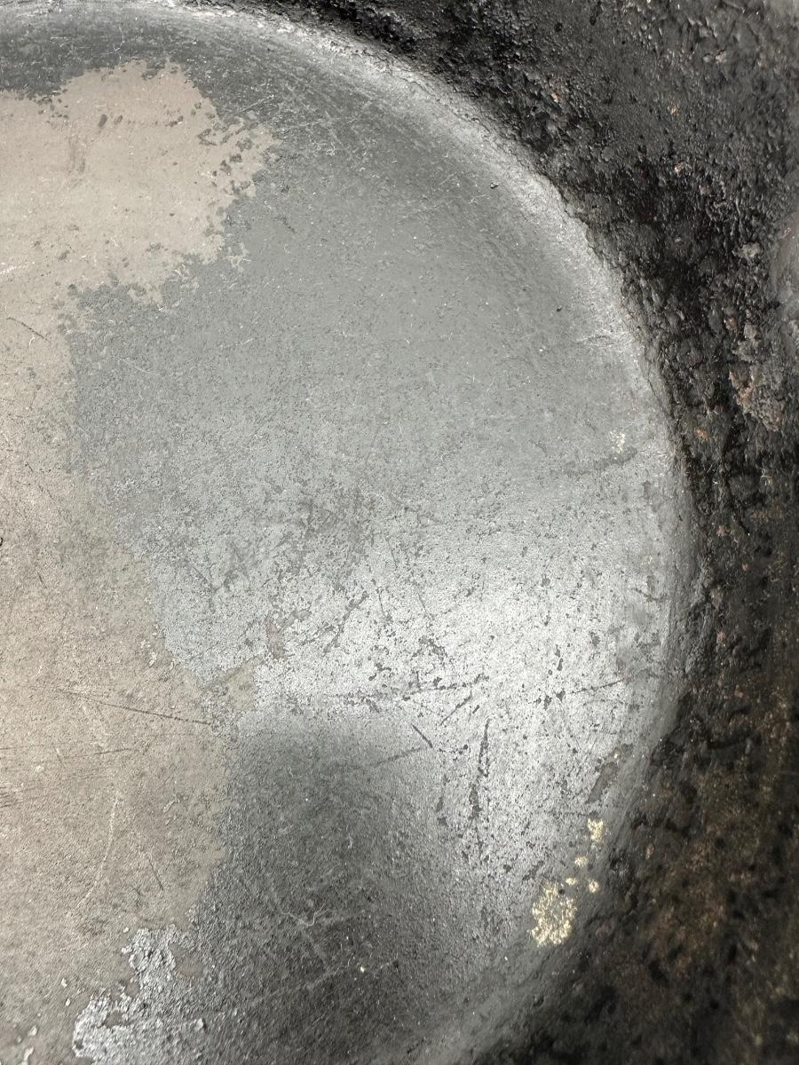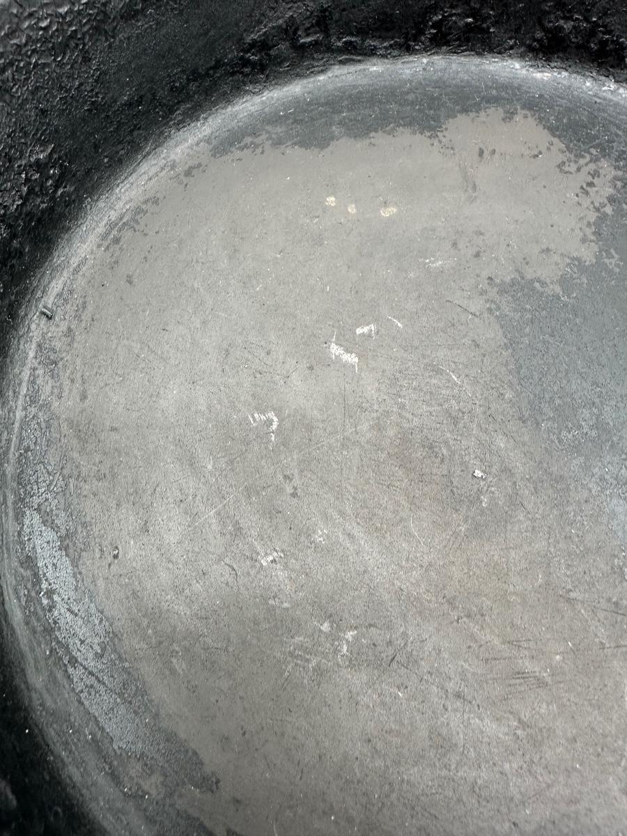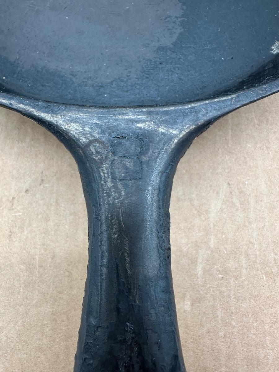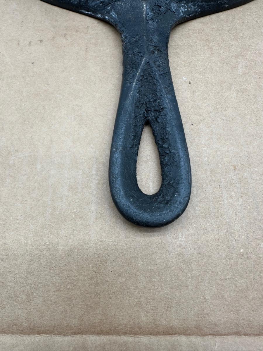 Authentic vintage Griswold cast iron skillet, No. 8, featuring the desirable Large Block Logo with cross and “ERIE PA., U.S.A.” marking on the bottom.