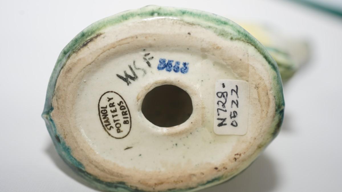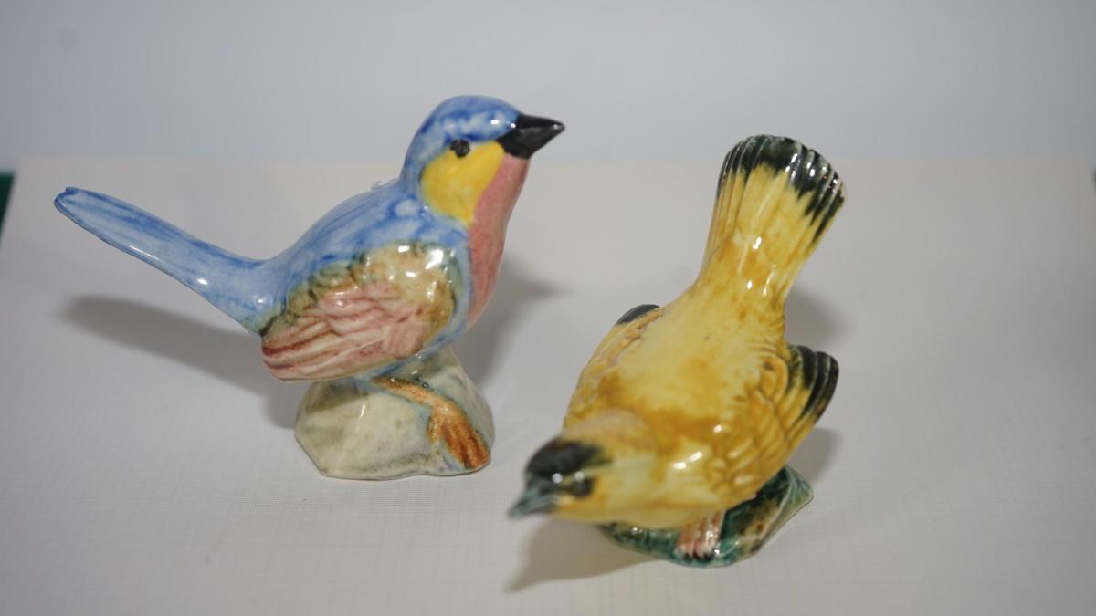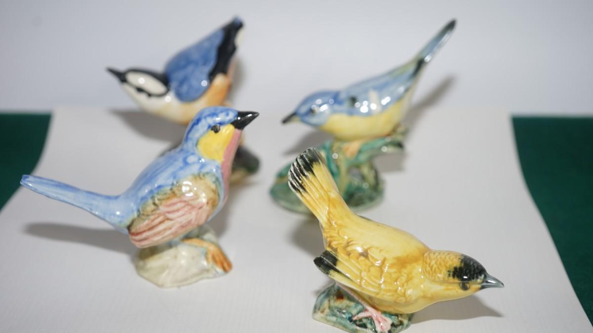 thus us a grouping of four hand painted ceramic birds by Stangl pottery