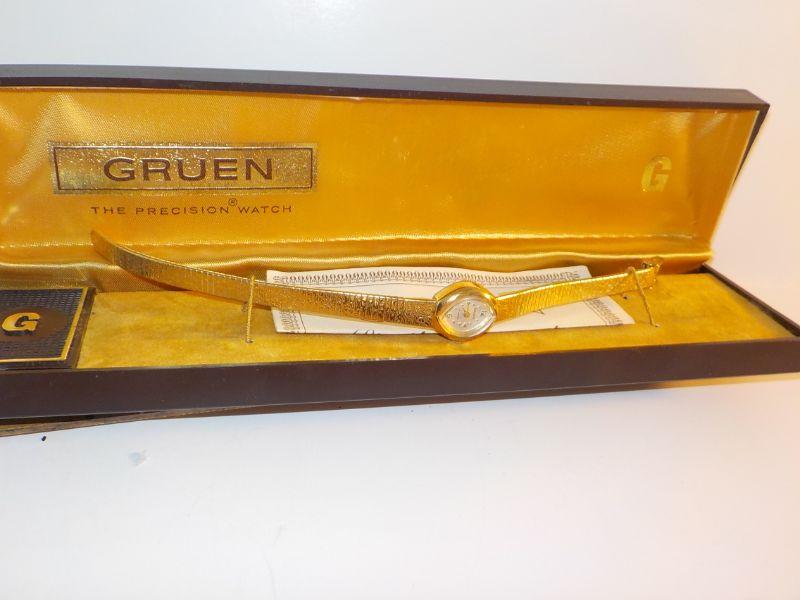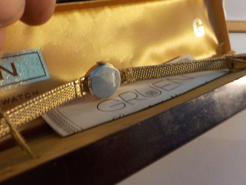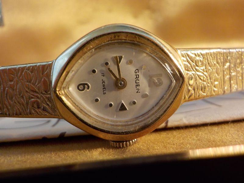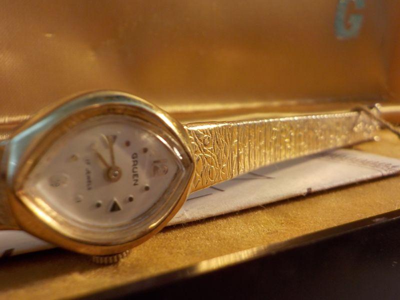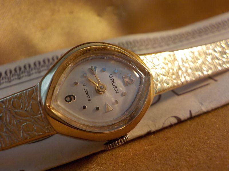 " Vintage Grugen Ladies High Fashion / 17 jewels wrist watch, gold".