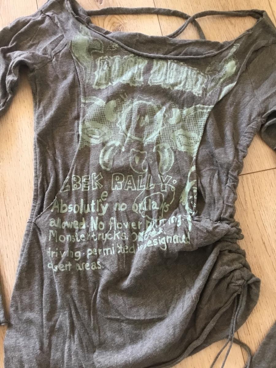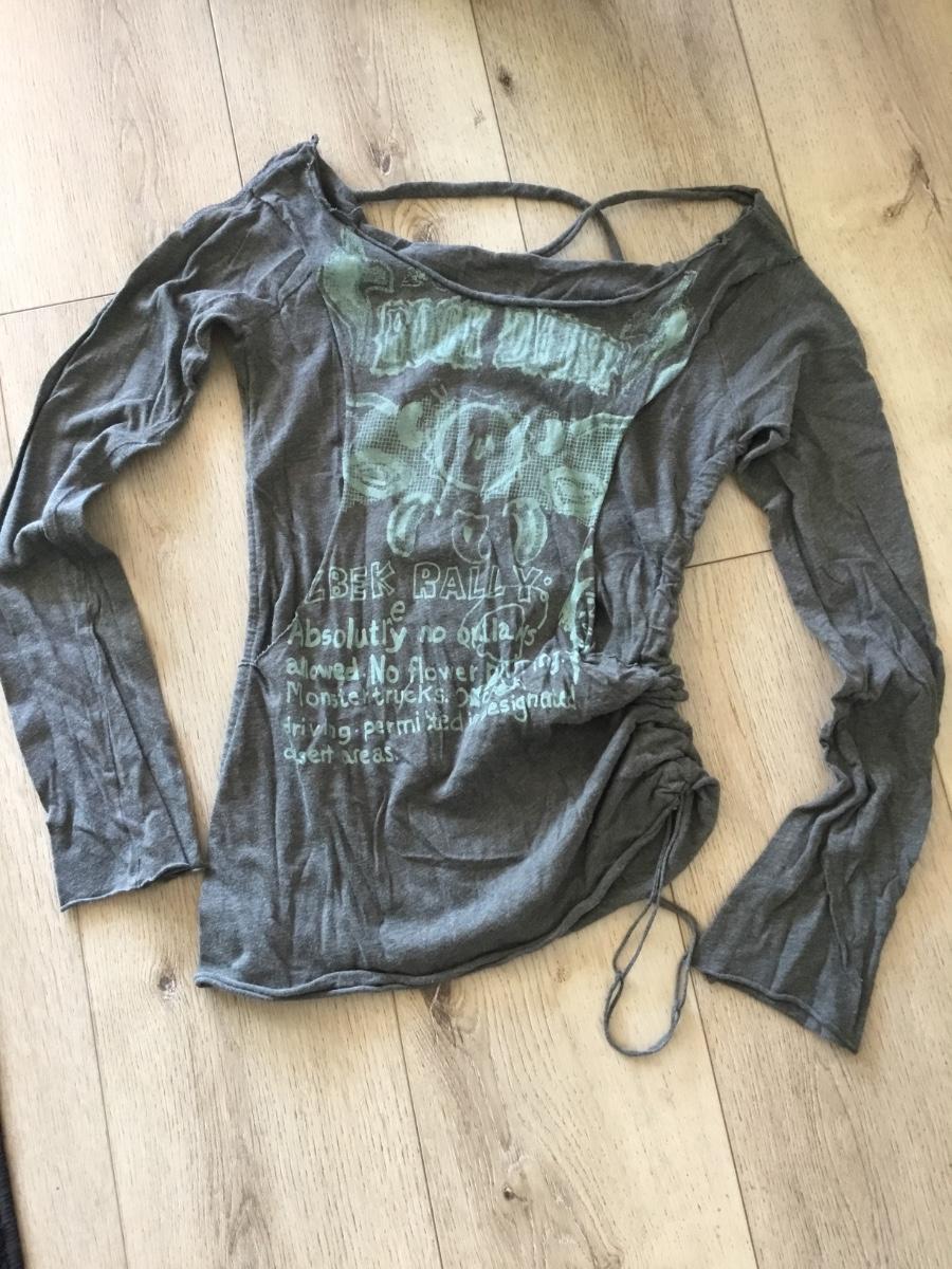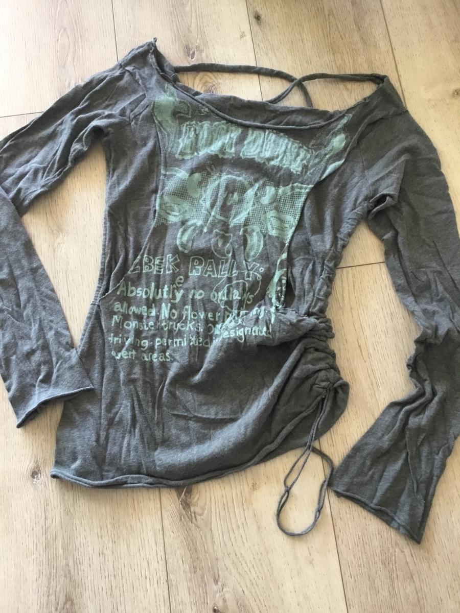 Vintage grungy diesel, long sleeve top super soft, lightweight and Grey & faded green adjustable, ruching sides