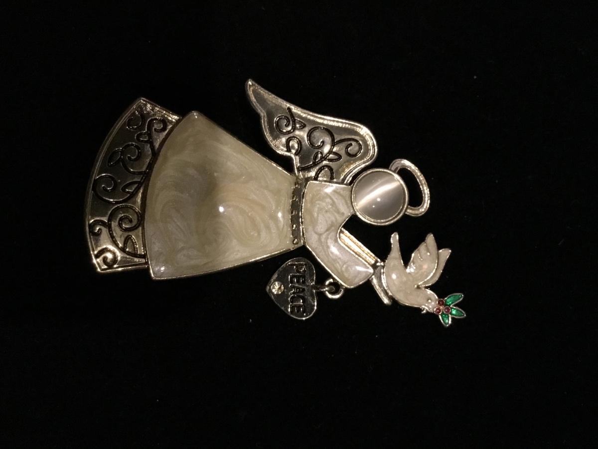Vintage guardian angel pin Christmas brooch