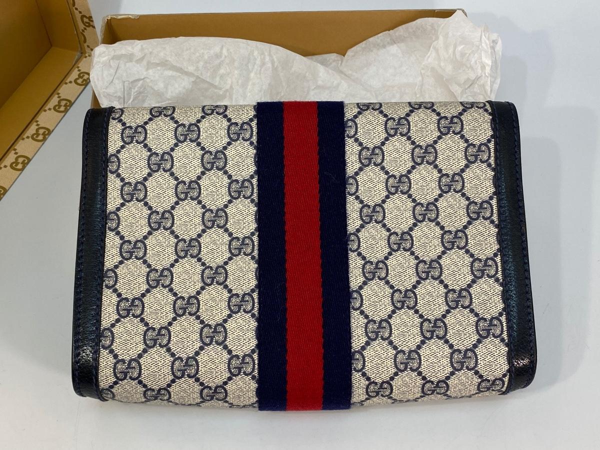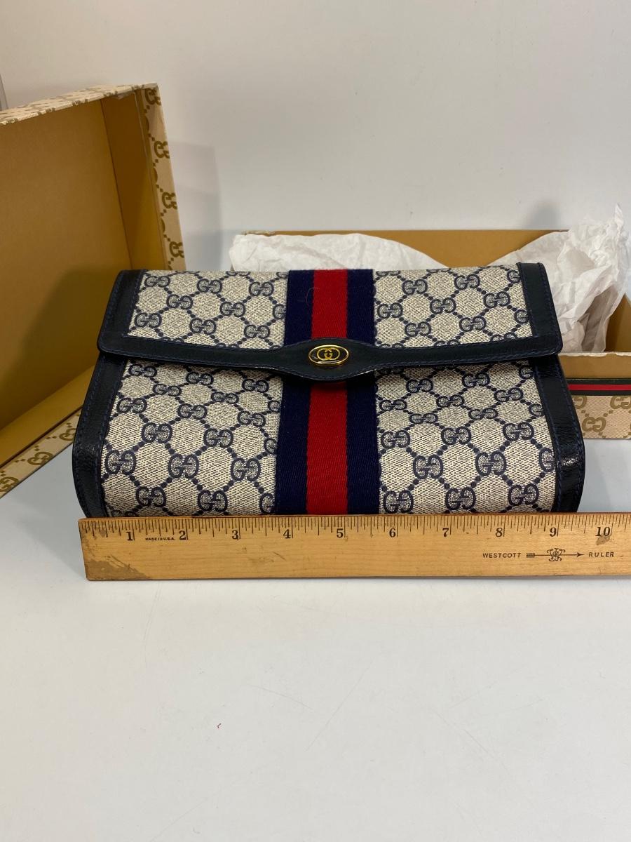 Vintage Gucci Accessory Collection Iconic Blue & Red Pattern Cosmetic Makeup Bag