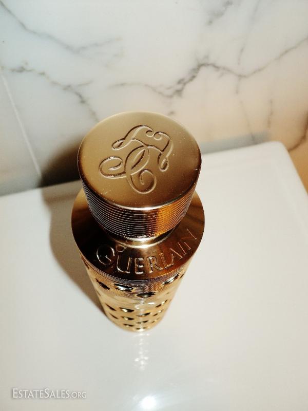 Grooves and embossed. The top opens to hold the bottle and has its original bottle with a bit of parfum. Could be refilled by Guerlain. In amazing Condition signed and copyright 1996 by Guerlain