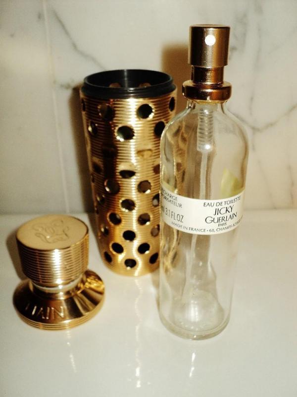 Grooves and embossed. The top opens to hold the bottle and has its original bottle with a bit of parfum. Could be refilled by Guerlain. In amazing Condition signed and copyright 1996 by Guerlain