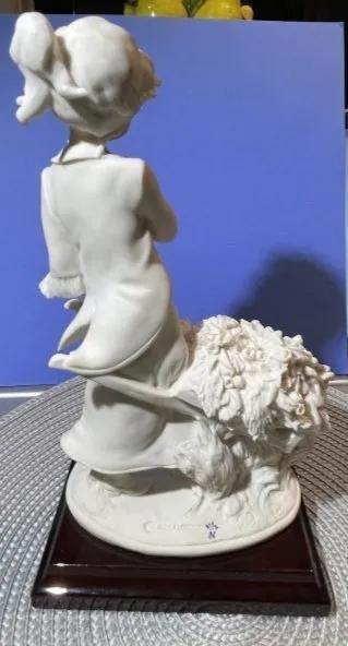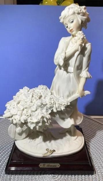 Vintage Guisseppe Armani's Girl w/Flower Cart Alabaster/Marble Figurine 10" Tall in VG Preowned Condition as Pictured.