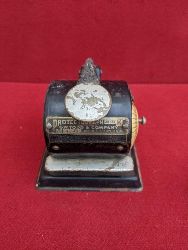 Vintage G.W. Todd & Company Model K Protectograph Check Writer Rochester NY USA