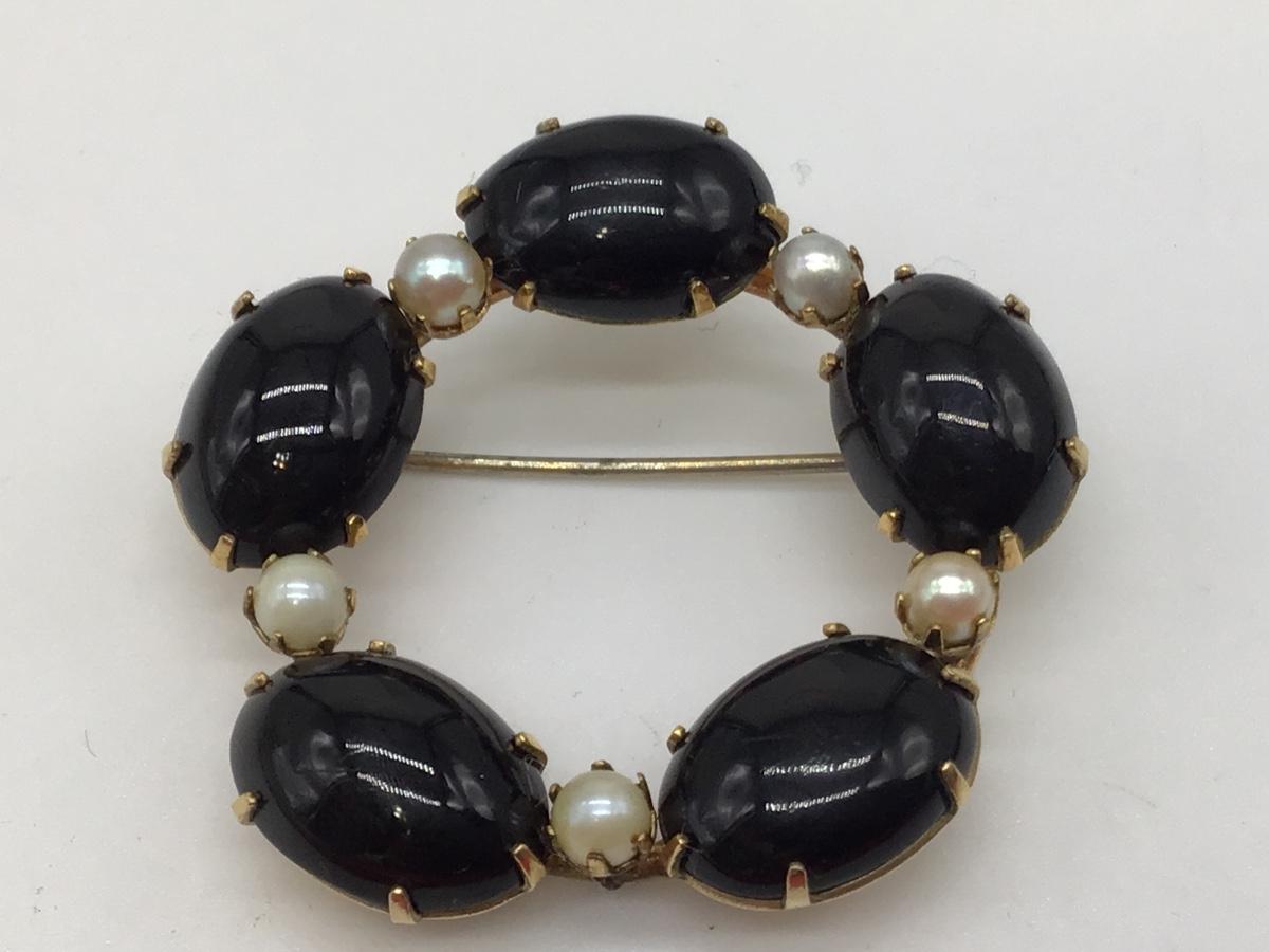 Vintage H Griffith 12 KTGF Pearl Brooch Marked