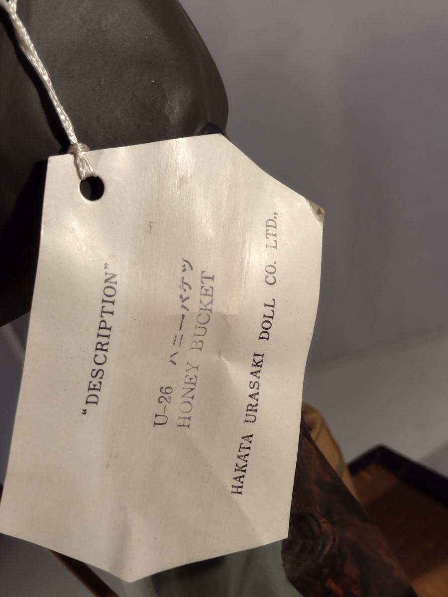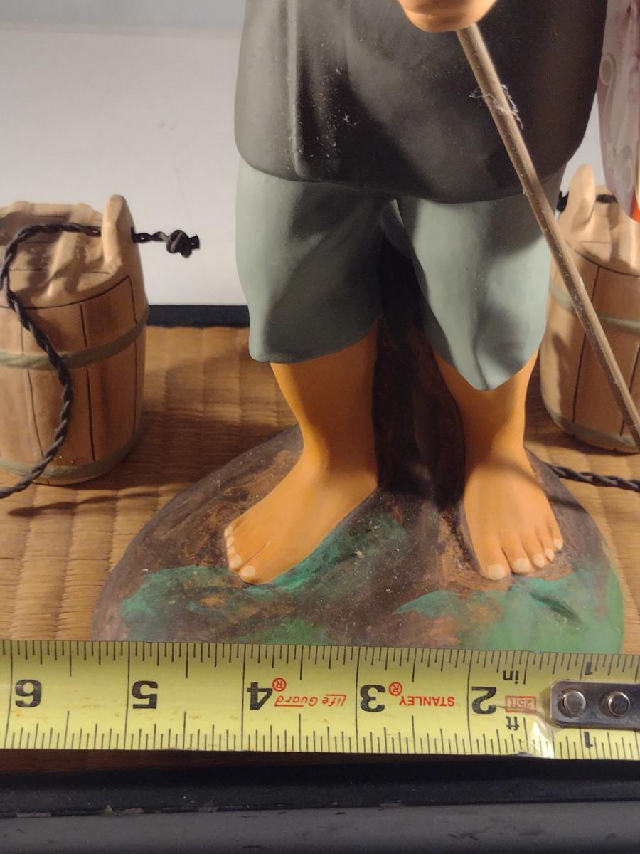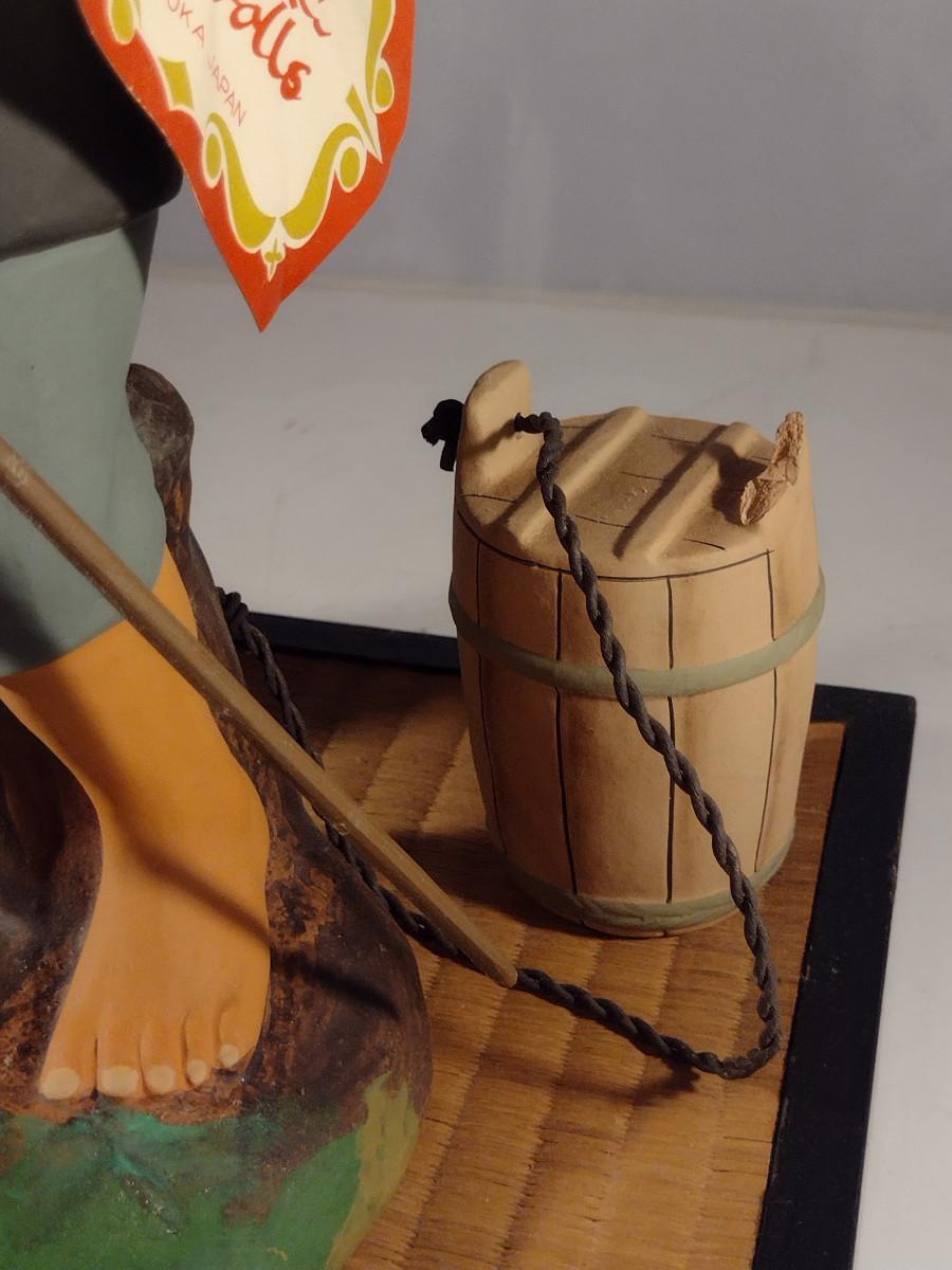 Vintage Hakata Urasaki Japanese Clay Figurine with Mat- Honey Bucket (#7). Item has damaged bucket- please see all pictures for condition.