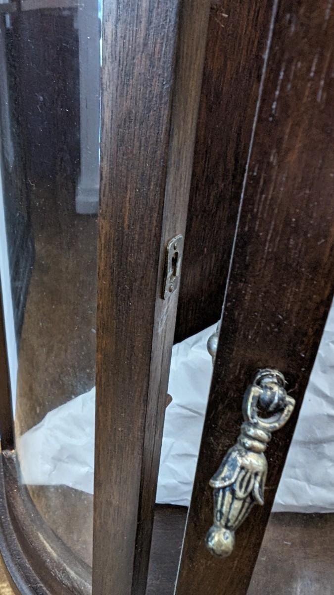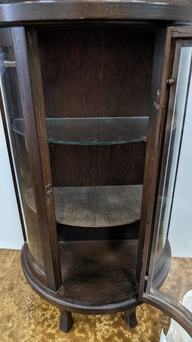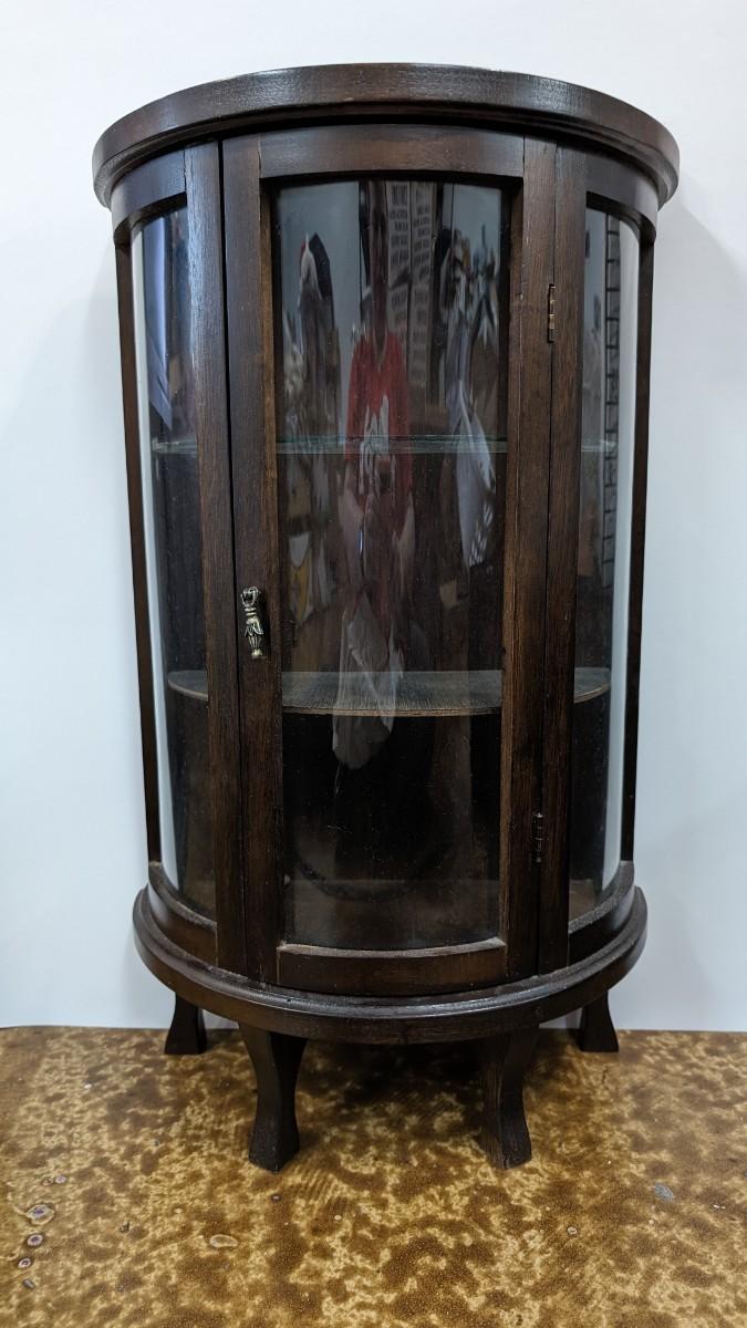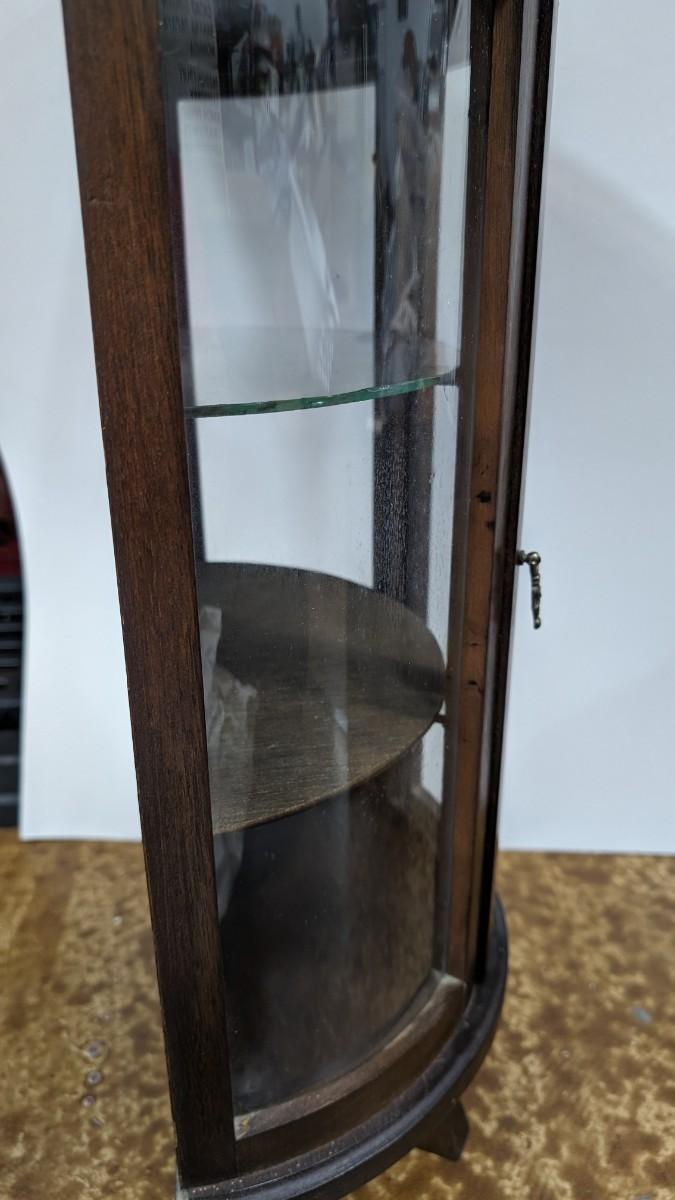 Vintage Half Circle Miniature Display Curio Cabinet Wooden and Glass