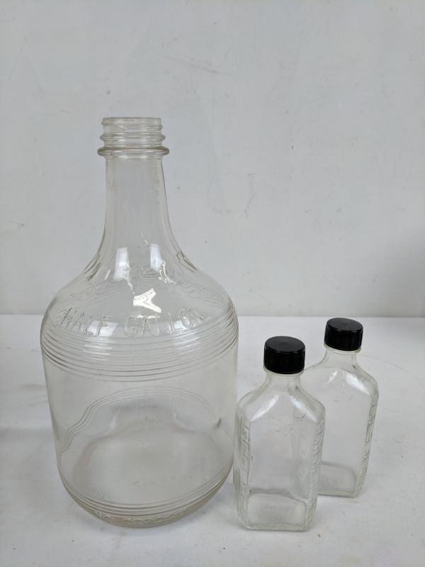 VIntage Half Gallon Jar & Two Small 3 oz Bottles