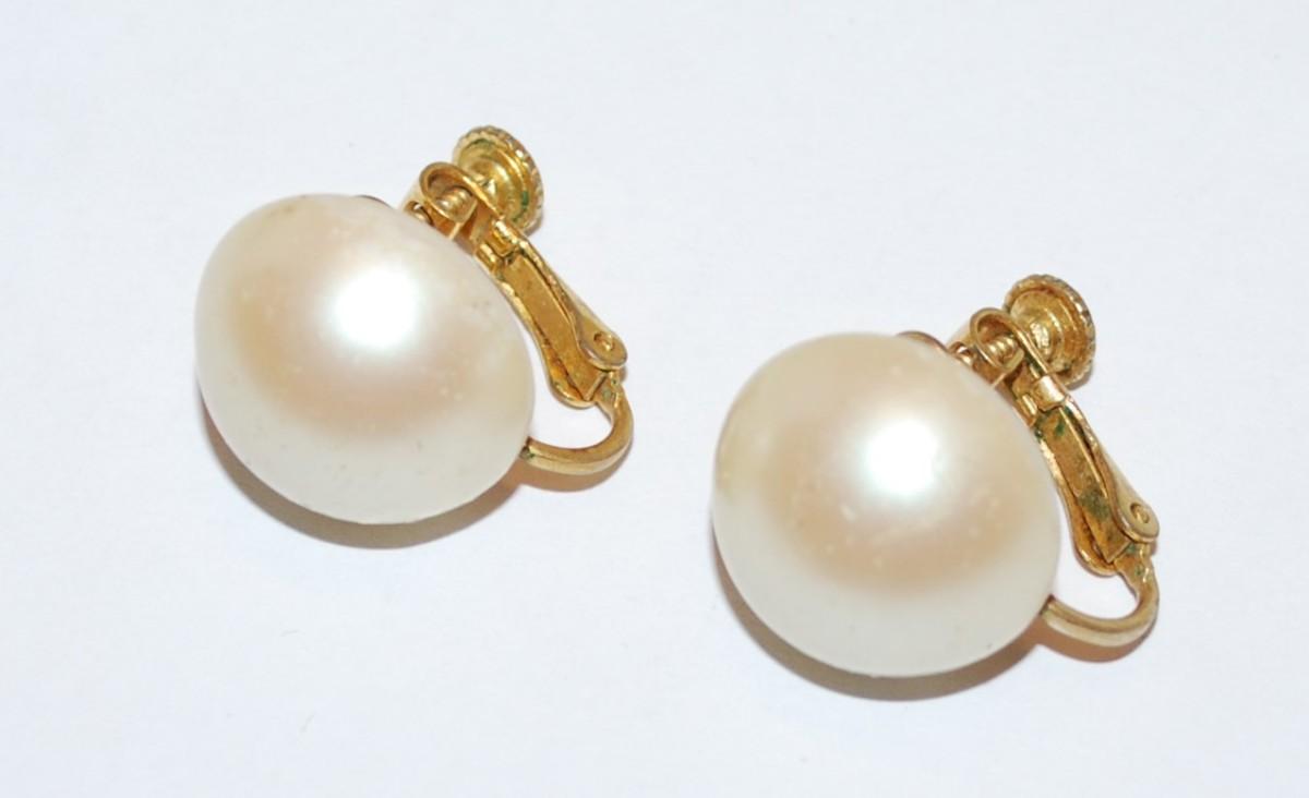 Vintage Half-Globe Faux Pearl Button EARRINGS Set with Spring Screwback Clasp