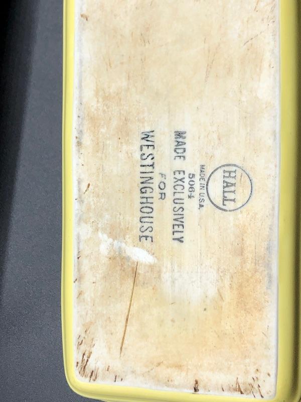 Vintage Hall Pottery exclusively for Westinghouse Bread Pan. Wonderful pale yellow color. Good Condition.