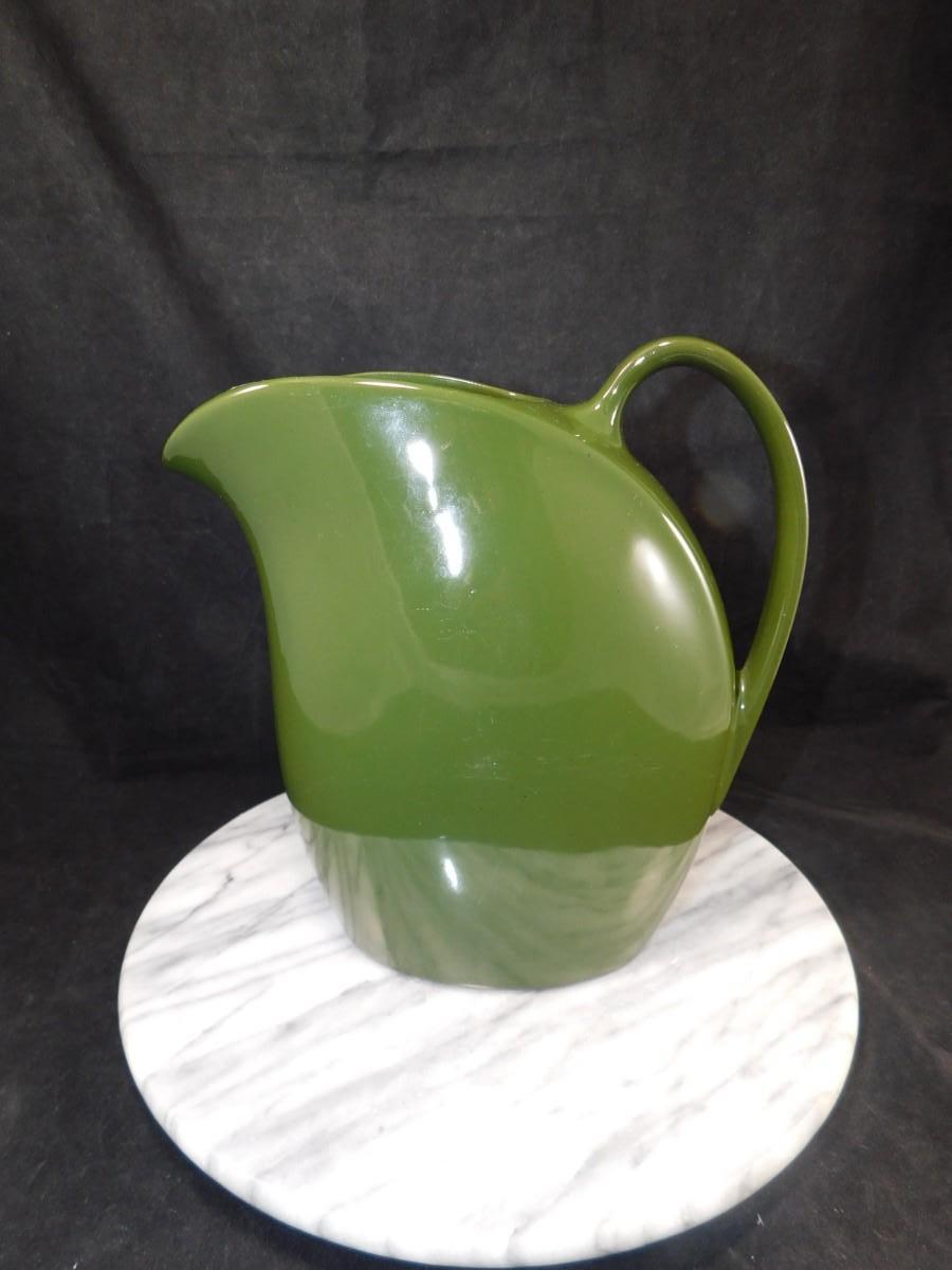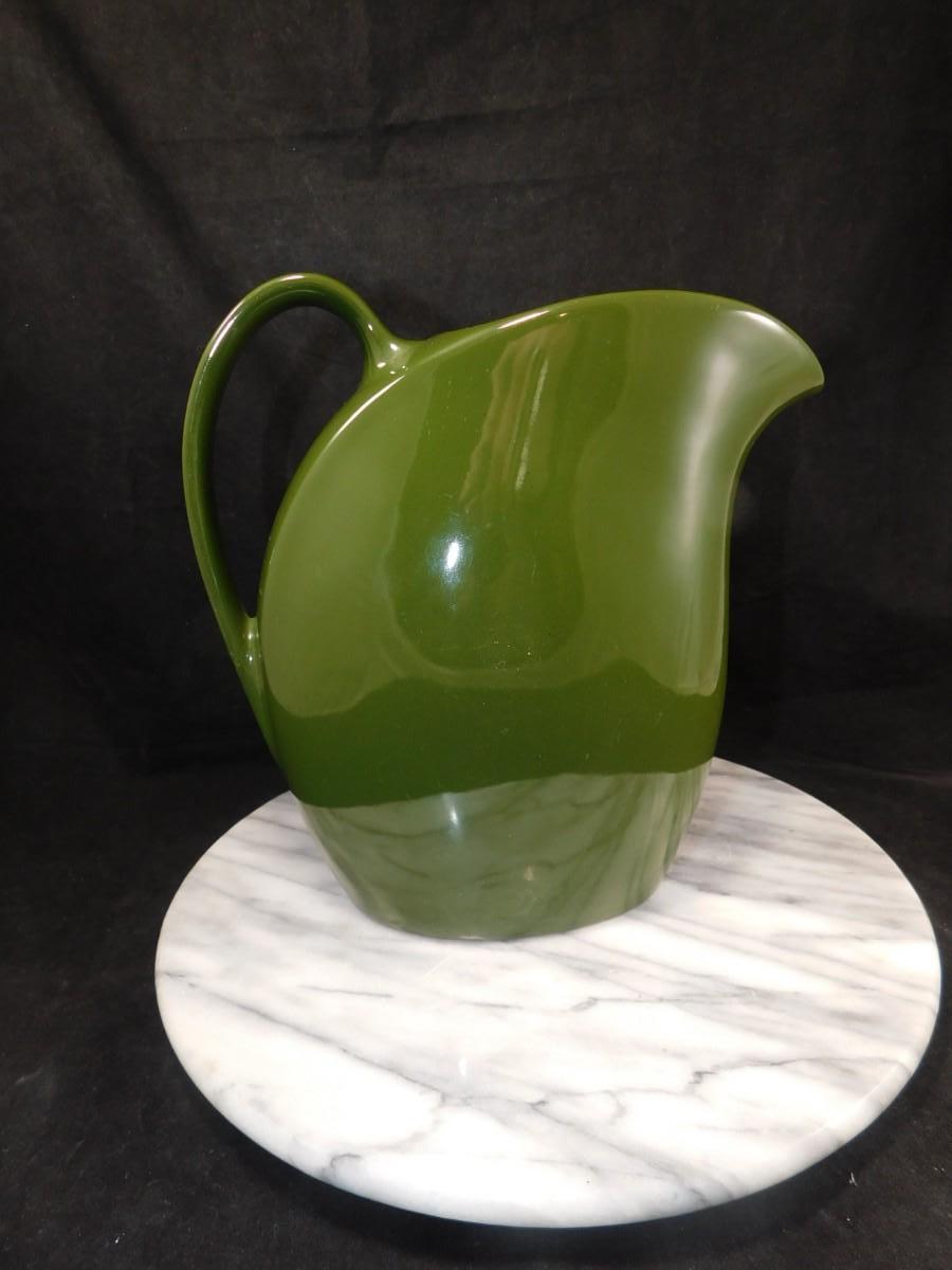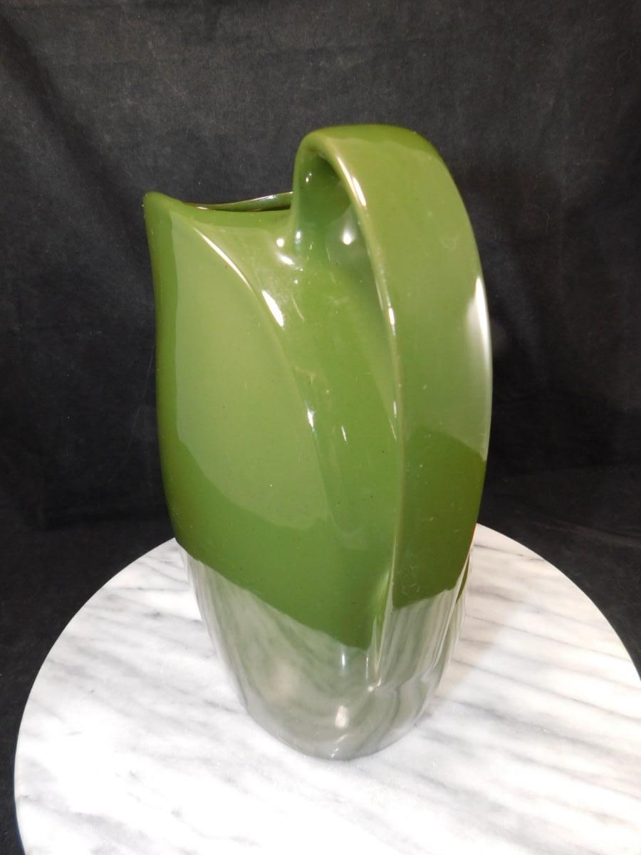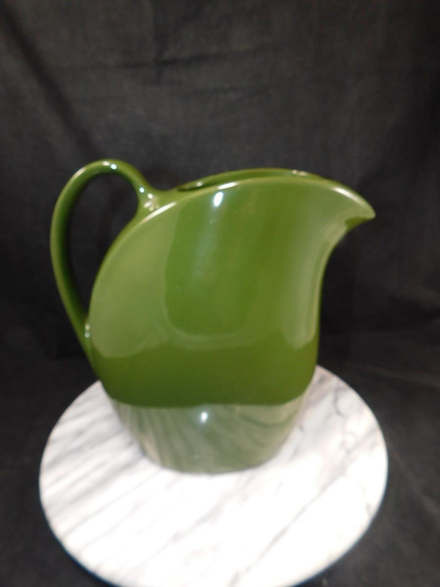 Vintage HALL Pottery MCM Forest Green Retro Pitcher 9.25”x9.25”x4.5”